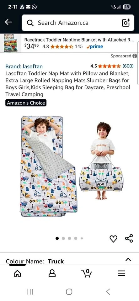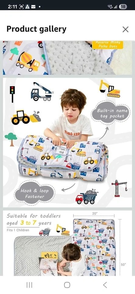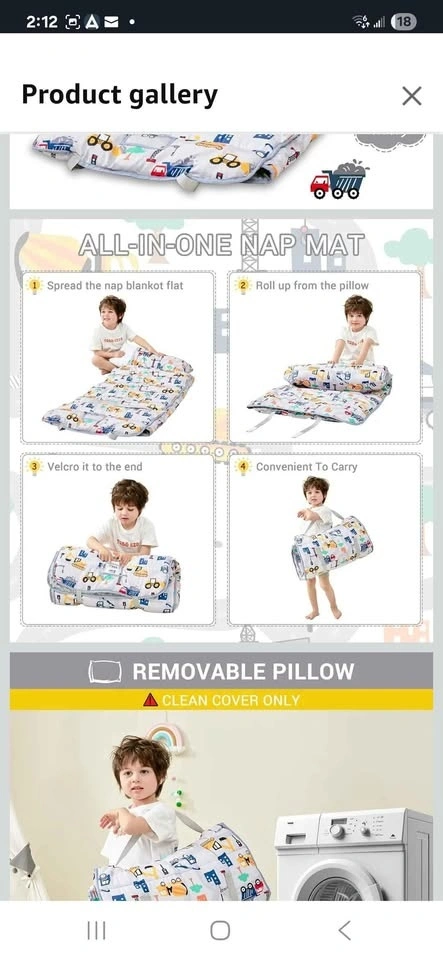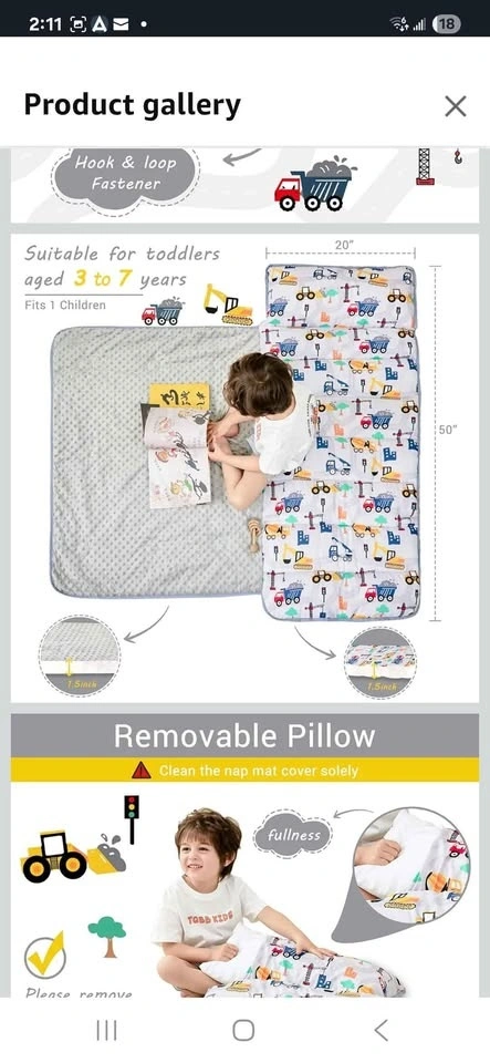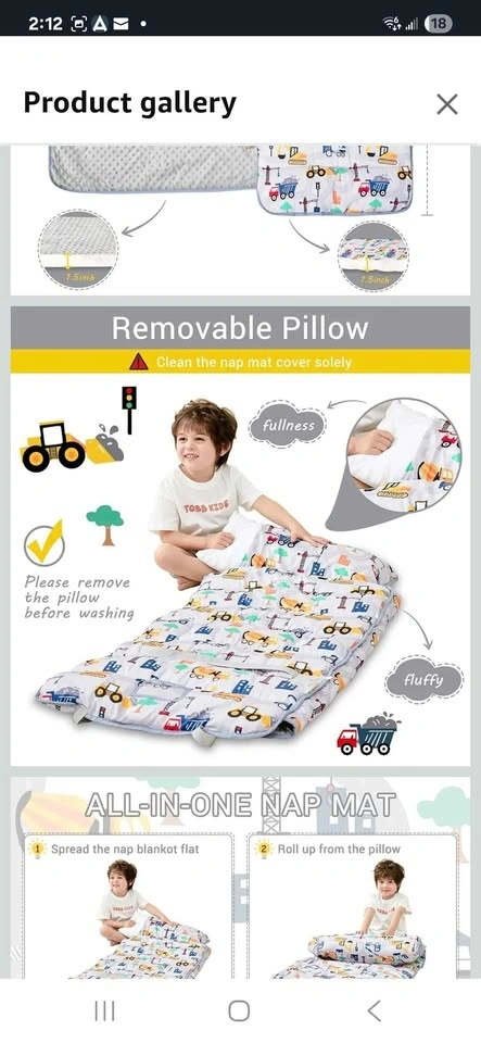 Brand new toddler nap mat with pillow and blanket. Extra large rolled napping mat, slumber bag for boys and girls. Great for daycare, preschool, travel, or camping. Pet-free and smoke-free home.