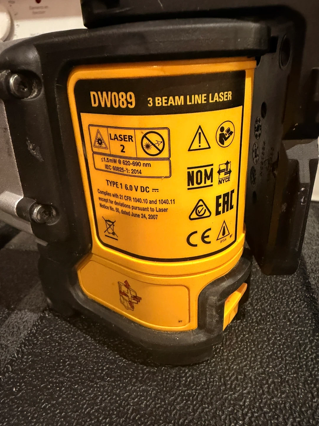 This DeWalt DW089 laser level projects three beams for versatile layout work. It's a laser class 2 device that complies with 21 CFR