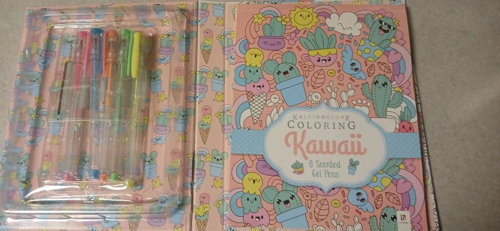 A Kaleidoscope Coloring Kawaii set! It includes 5 1 is missing scented gel pens and over 30 images. Perfect for anyone who loves to color and be creative