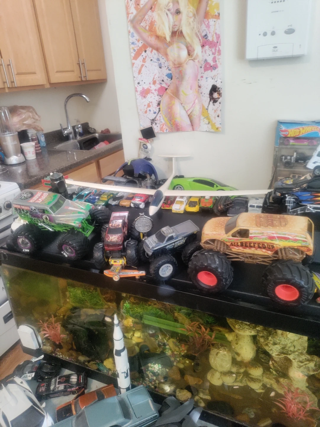 Assorted Toy Cars and Monster Trucks