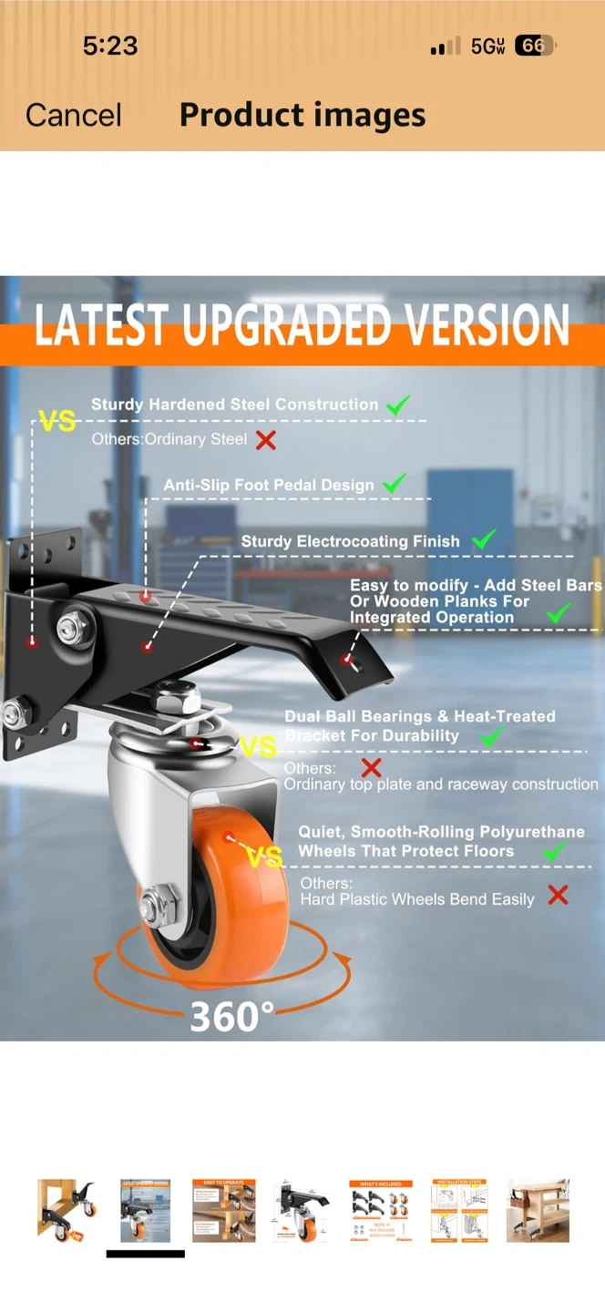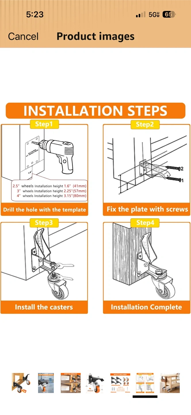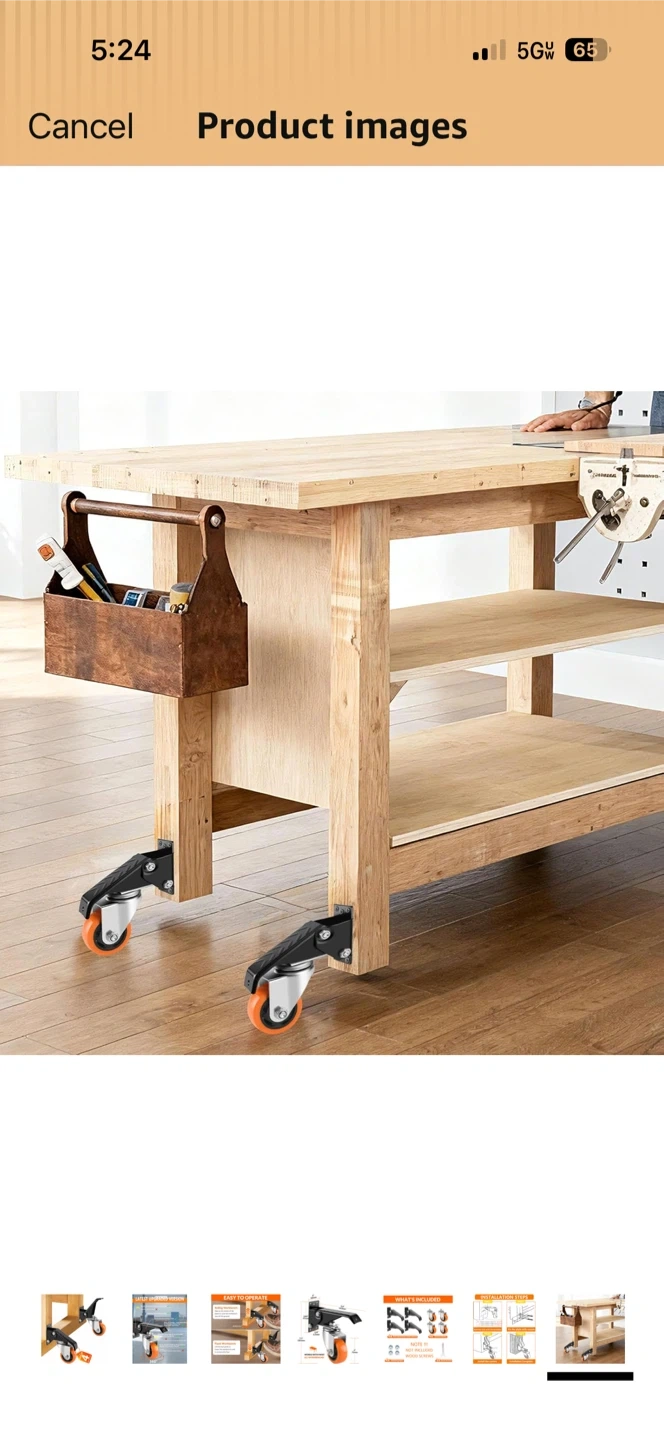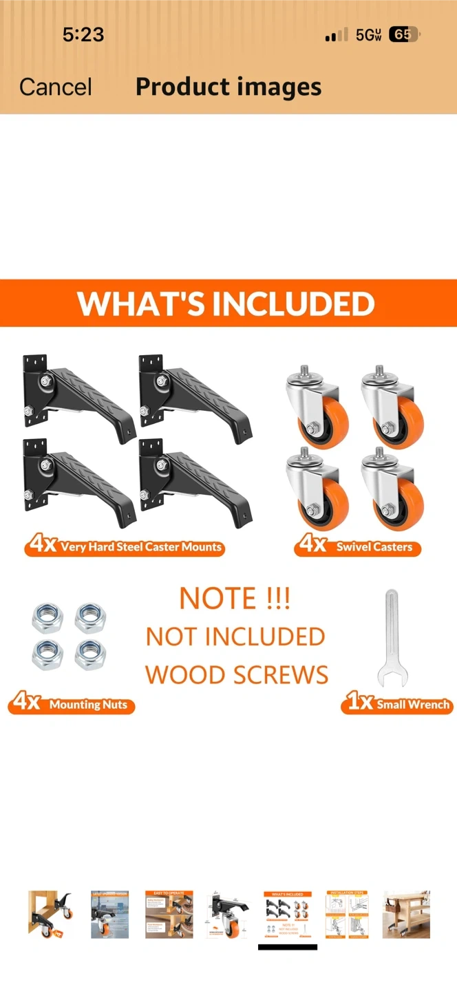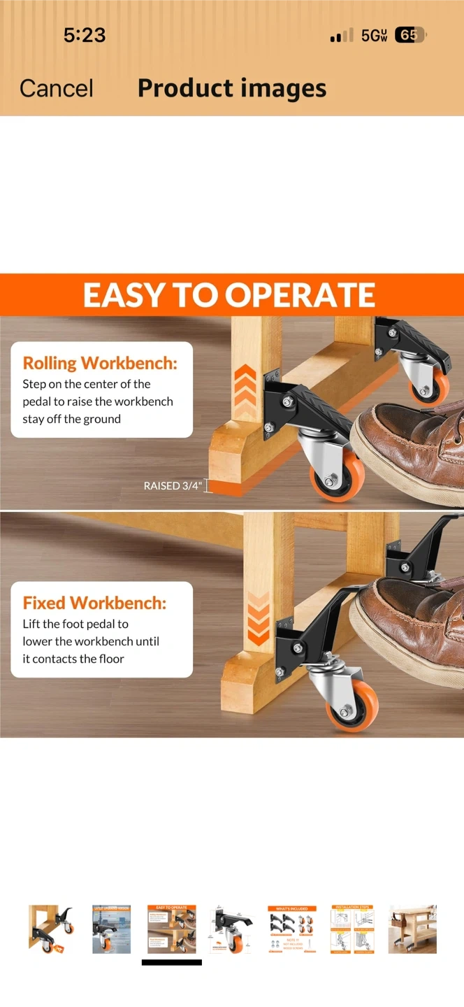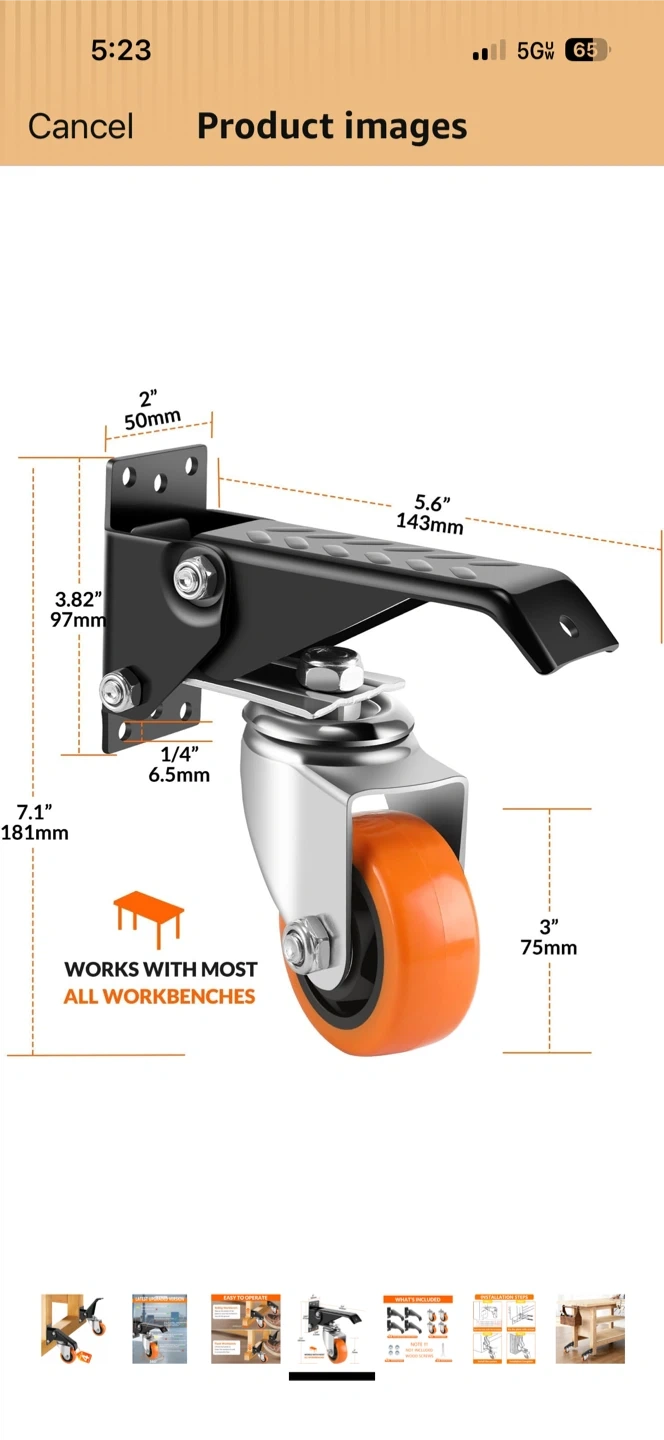 This set includes four heavy-duty retractable caster wheels, designed to make your workbench mobile. They feature hardened steel construction and quiet, smooth-rolling polyurethane wheels that protect floors. Mounting nuts and a small wrench are included; wood screws are not. Simply step on the pedal to raise the workbench and lower it to the floor.