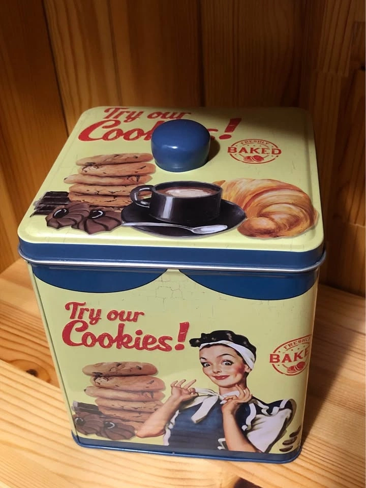 This tin brings vintage charm to your household while still being entirely functional for your daily needs! I was using it to hold teabags, but there’s lots of possibilities!
