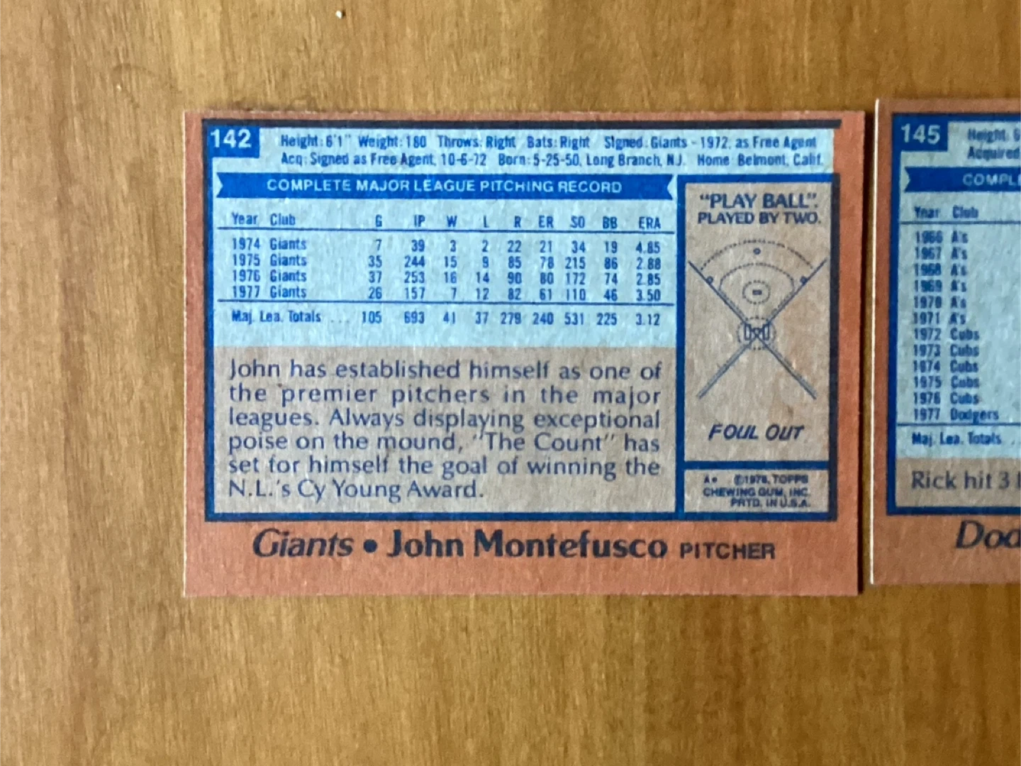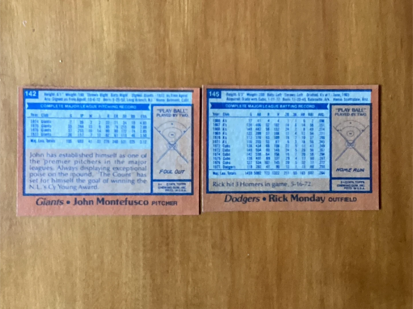 $15.00 for the pair - John Montefusco of the Giants #142 & Rick Monday of the Dodgers #145 - Both clean & in excellent condition - Shipping available - Located at Pape Ave & Cosburn ave Toronto - Call Patrick @ 416-930-8338. - Thanks & chat out my other posts