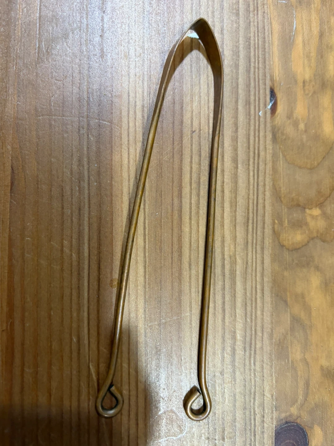 This is a metal tongue scraper. It's designed to help clean your tongue. It has a U-shaped head and loop handles for grip. Made from metal.