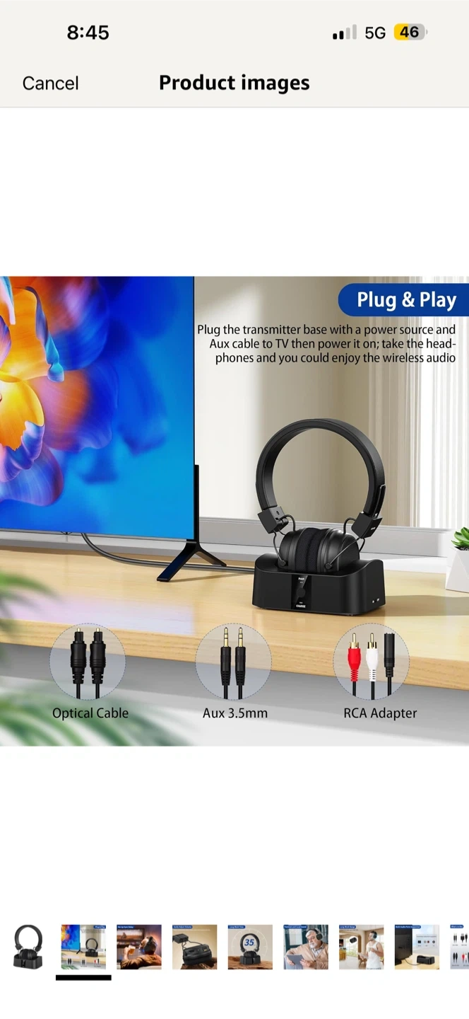 These wireless TV headphones offer a long work time of 35 hours. They connect easily via the transmitter base with optical cable, aux 3.5mm, or RCA adapter. Enjoy premium and loud sound with 50mm speaker drivers.