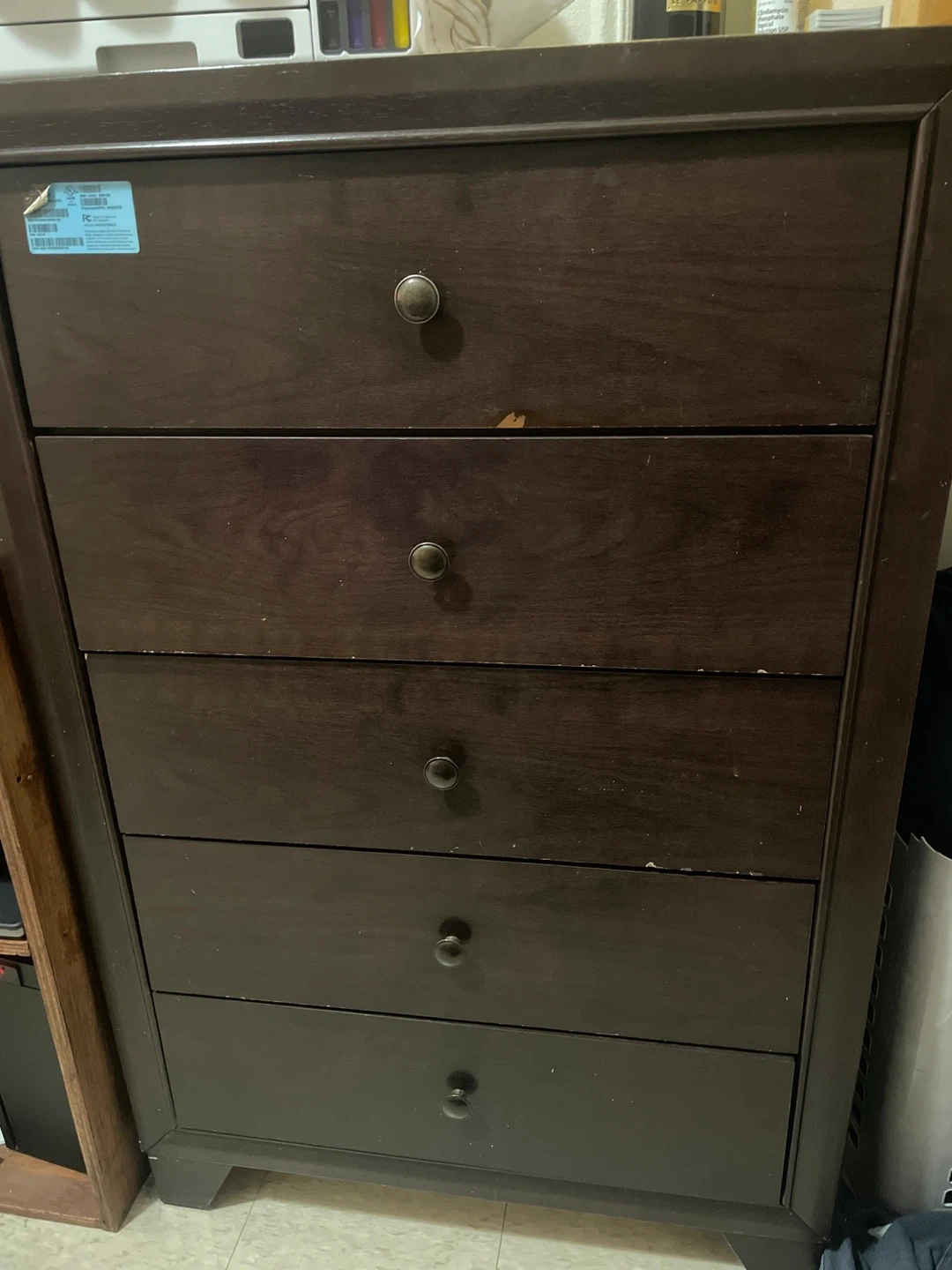 Buy & SellDark Wood 5-Drawer Dresser🥕Dark Wood 5-Drawer Dresser🥕$64Dark wood dresser with five drawers. It's a nice addition for bedroom storage. Drawer fronts have round metal knobs. Wood material.WHERE TO MEETConcrete plant park BronxView MapSELLERMayraHunts Point250 reviews0 chats·1 favorites·92 viewsSEND CHAT TO SELLERHi Mayra! I’m interested in your listing.Hi Mayra! I’m interested in your listing.Get the Karrot app to chatSign In to chat
