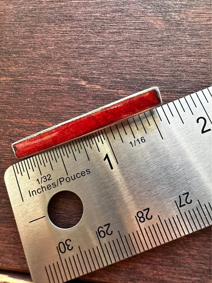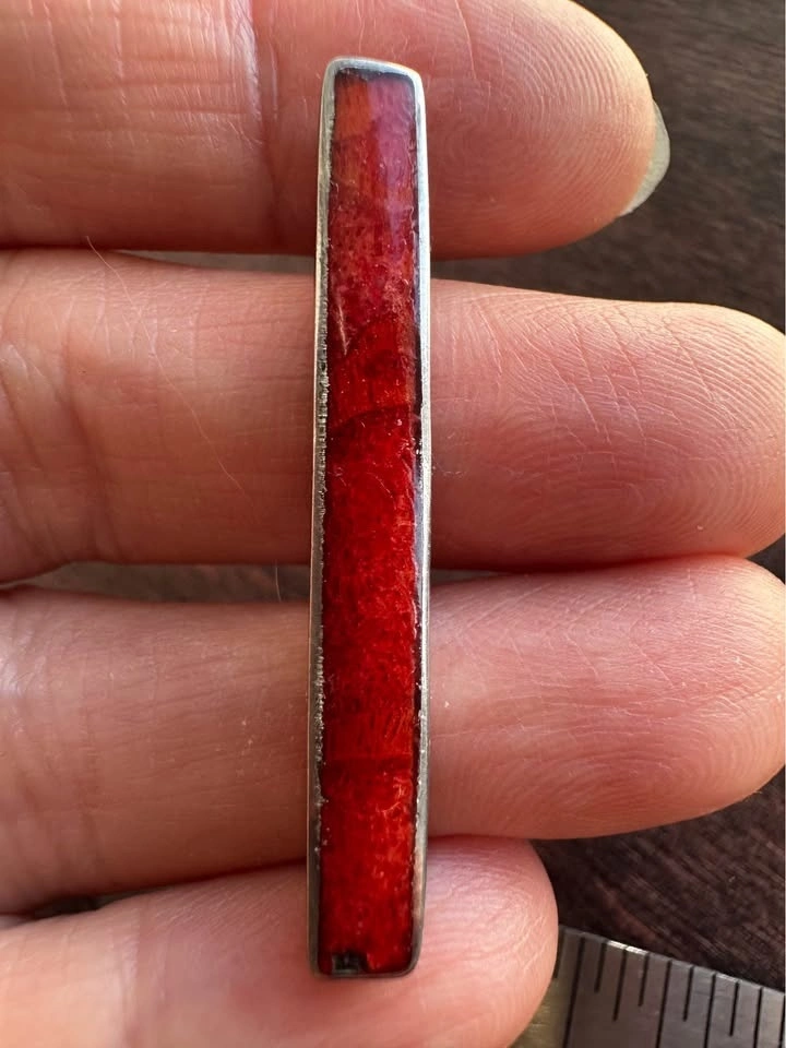 Stylish red and silver pendant with a pretty red inlay and silver-tone casing. About 1 inch long. Great accessory for a necklace or bracelet. Tested silver, no stamp found. Pickup only in Coquitlam, Westwood Plateau, behind IGA.