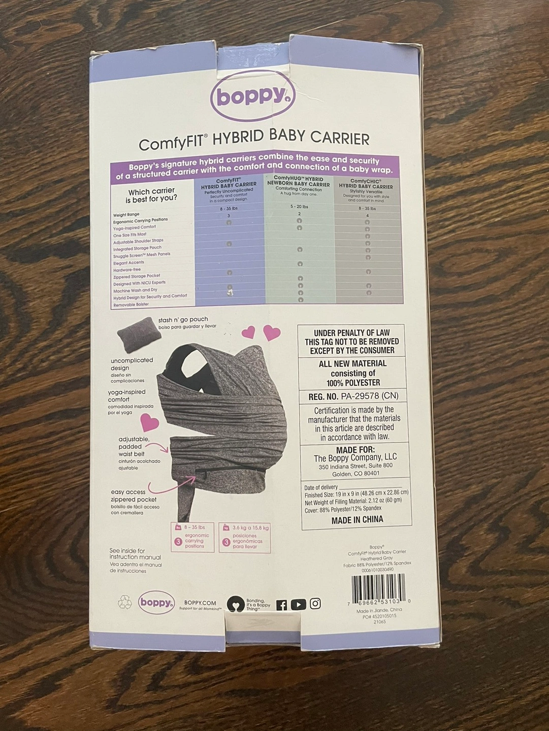 10Only used a few times. Baby ran hot, so he didn’t like this particular carrier. Still in box.