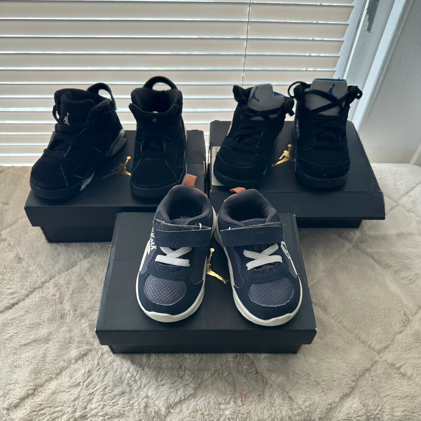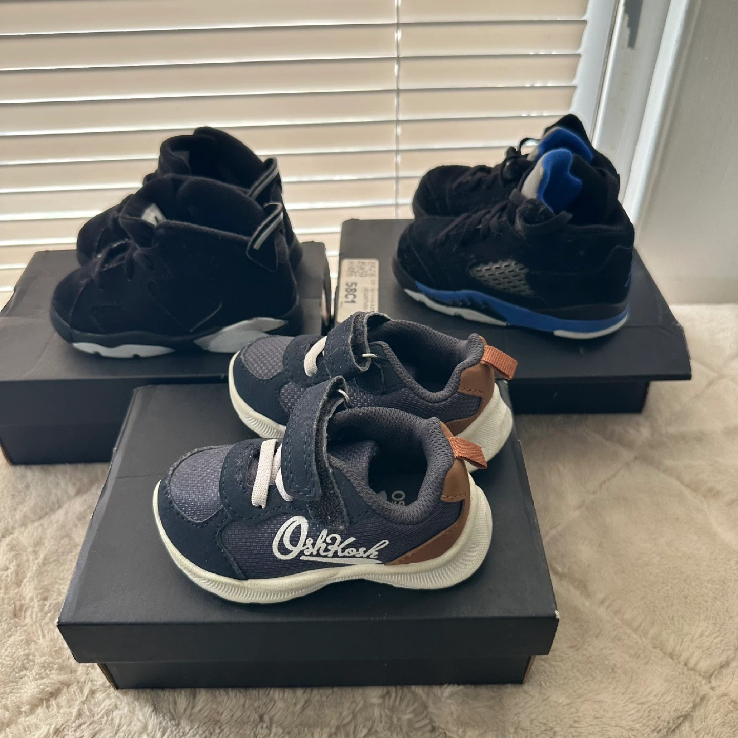 75Selling a set of baby shoes, including Air Jordans and OshKosh B'gosh sneakers! They come with their original boxes. Perfect for your little one!