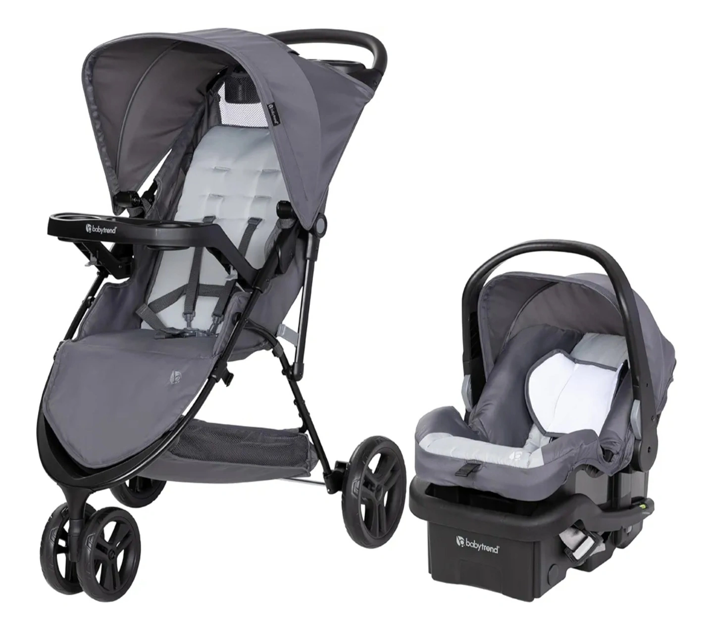 Selling a Baby Trend stroller and infant car seat combo! This set is perfect for parents on the go. The stroller features a convenient tray for drinks and snacks, and the car seat provides a safe and comfortable ride for your little one. It's in great condition and ready for a new home!