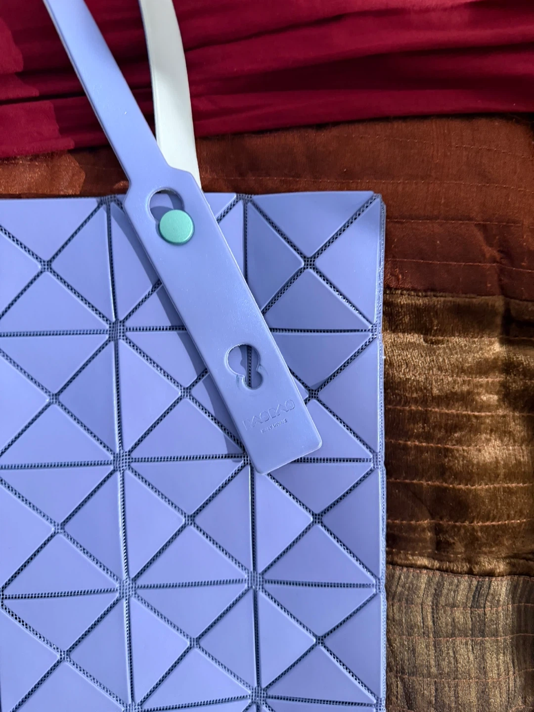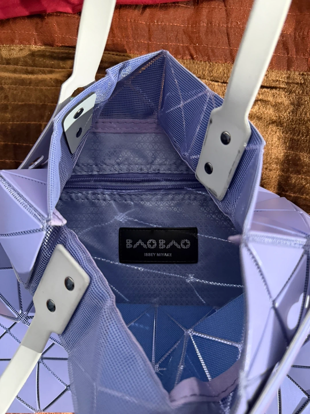 5Selling a BAO BAO ISSEY MIYAKE tote bag in a lovely lavender color! It's in great condition and ready for a new home. This stylish bag is perfect for everyday use and adds a pop of color to any outfit