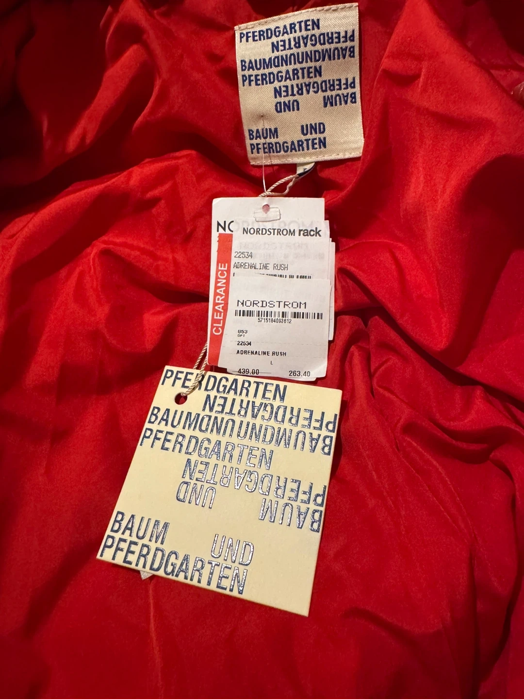 10Selling a Baum Und Pferdgarten Adrenaline Rush puffer jacket in size L! It's a vibrant red color and in great condition. The tag shows it was originally bought at Nordstrom Rack. BRAND NEW Original price 439 USD