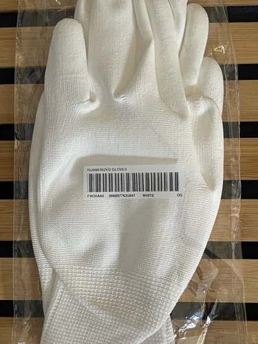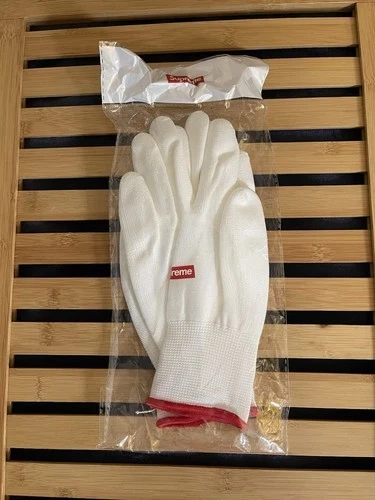 This is a pair of white Supreme rubberized rubber gloves for men, one size fits all. They have a solid pattern and are great for casual wear during the winter. Made from durable rubber, they offer protection and a good grip, perfect for outdoor activities, garden work, or everyday use.