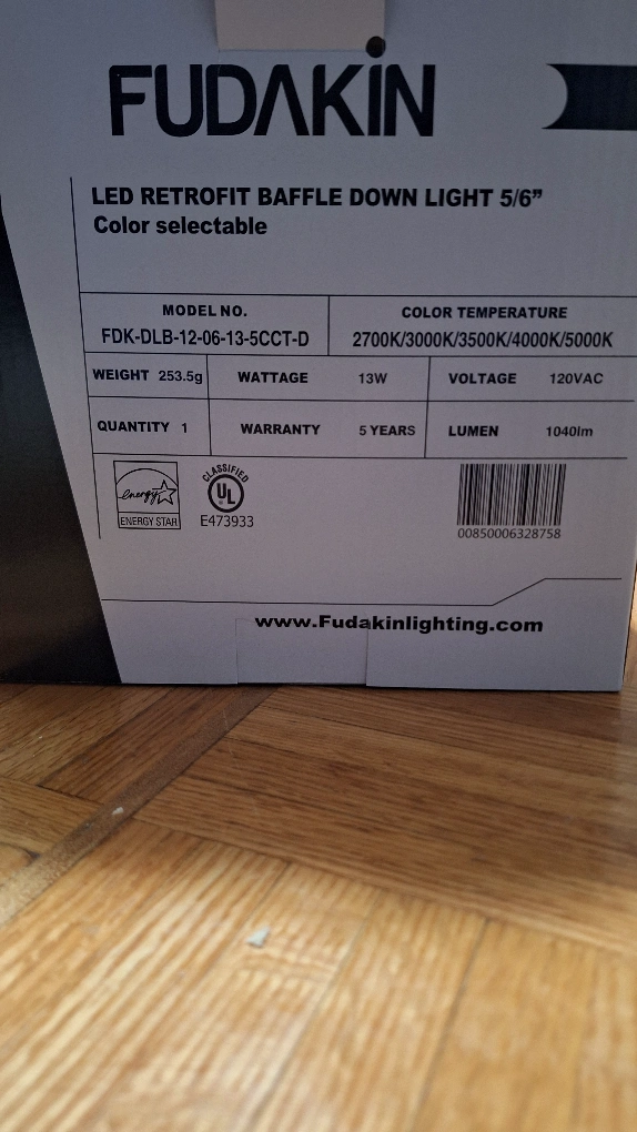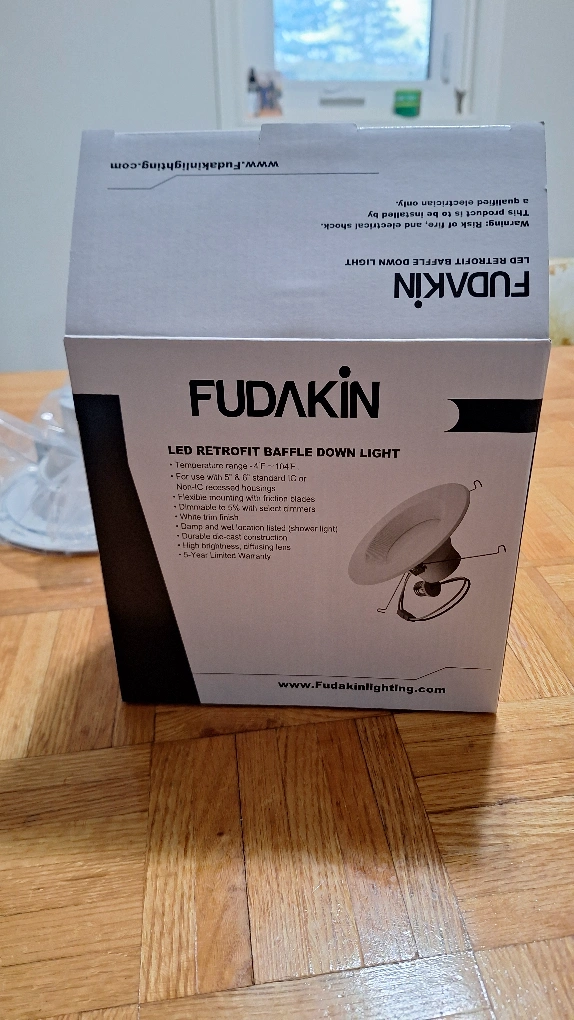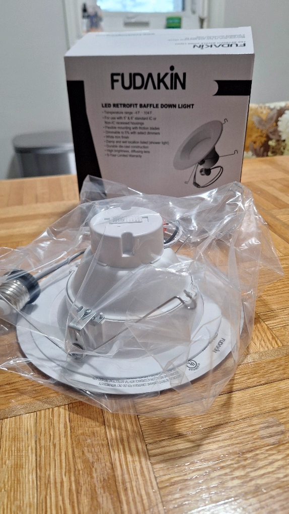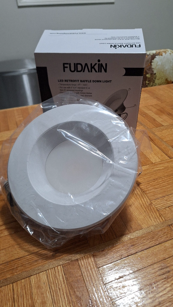 New FUDAKIN LED Retrofit Baffle Down Light. Brand new in box. LED retrofit baffle down light. White finish. Easy installation.