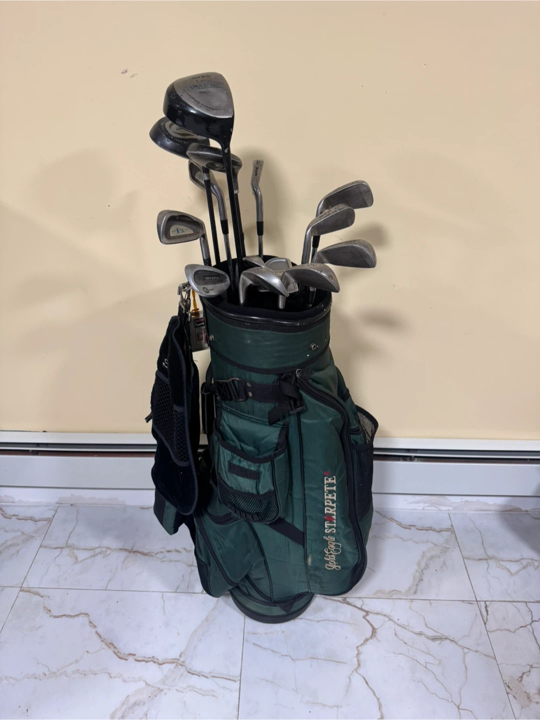 This is a book titled 'Tiger Woods How I Play Golf' and a box of Warrior Tour SS TDS golf balls. The golf balls are titanium-distance, 24 lithium surlyn, cut-proof. The book is by Tiger Woods with the editors of Golf Digest. It's a great set for improving your golf game!
