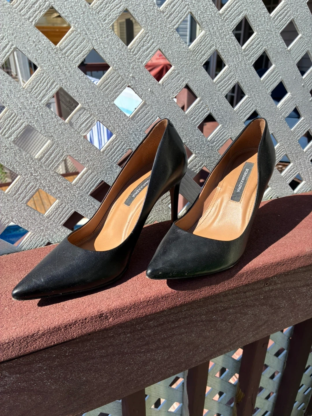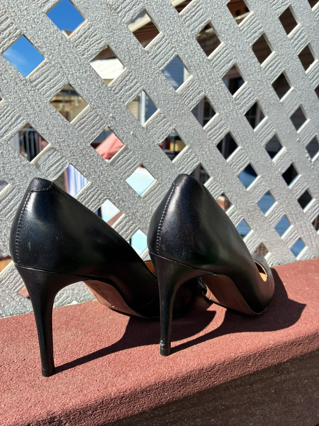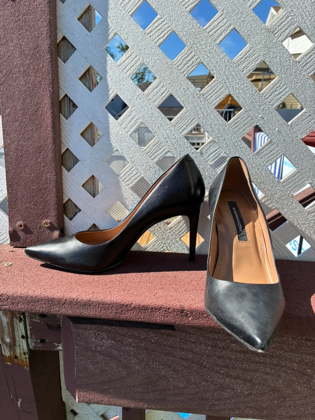 Selling a pair of black pleather heels from BCBGMAXAZRIA. They are in great condition and ready for a new home! Perfect for dressing up any outfit.