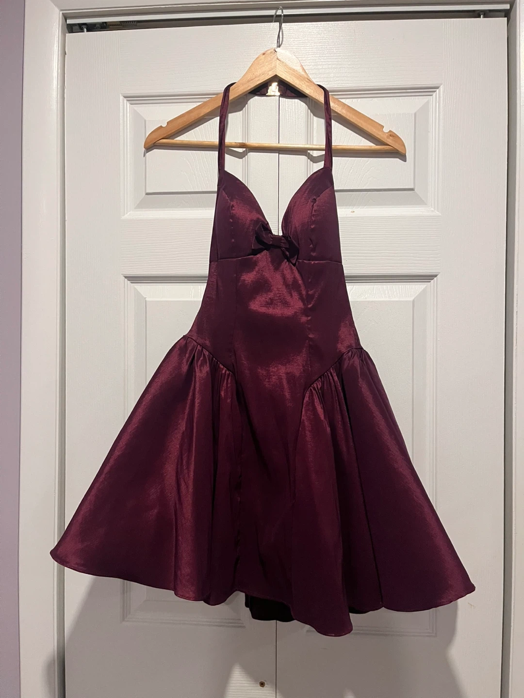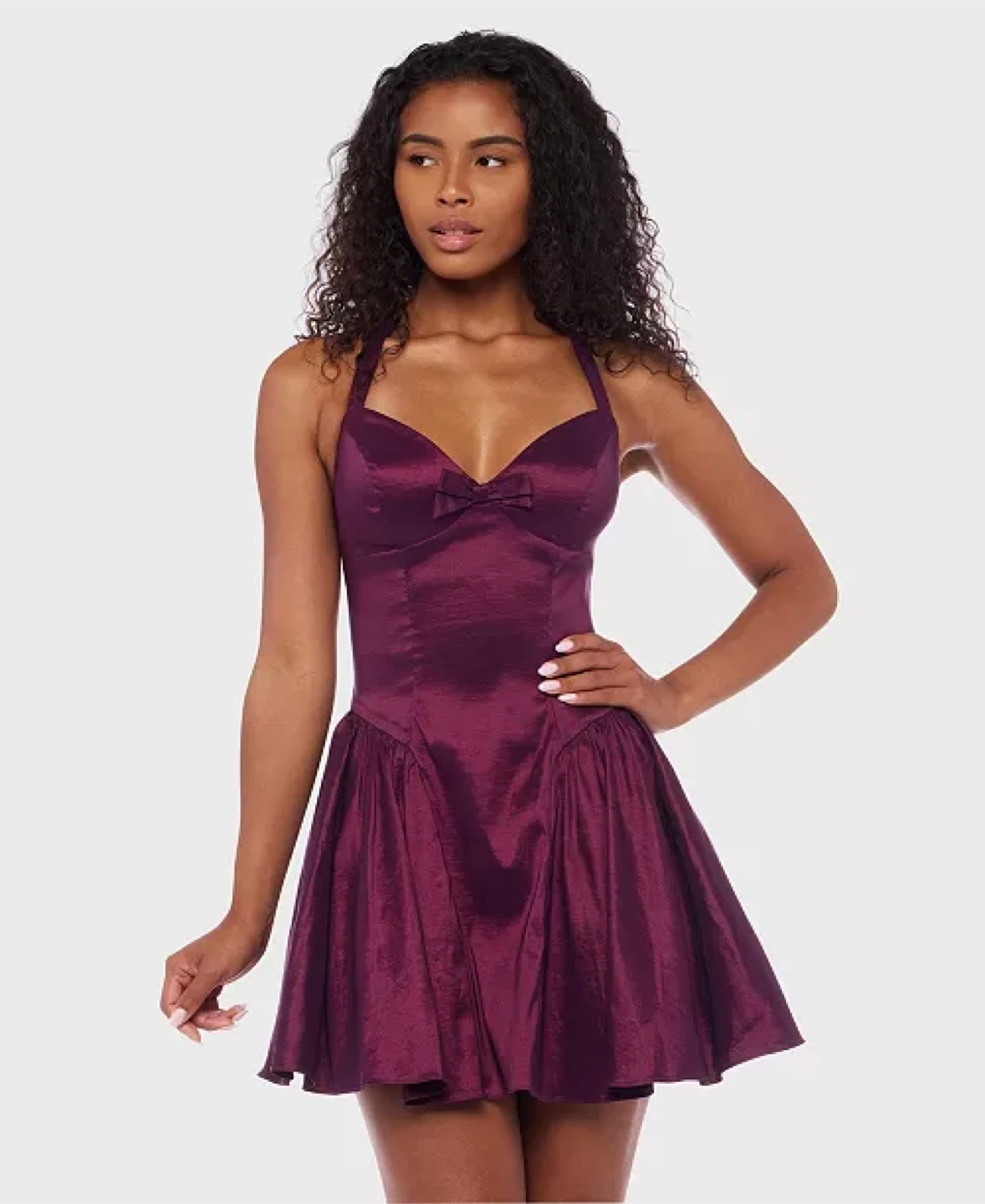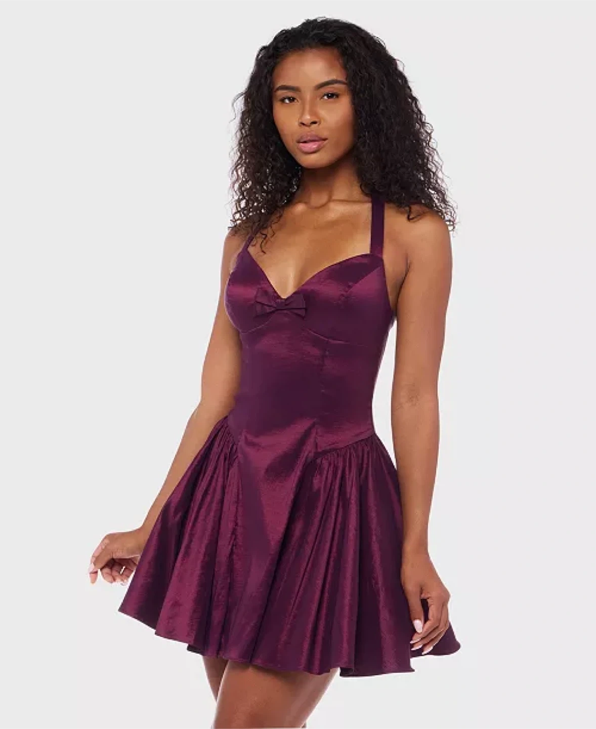 Purple Halter Neck Mini Dress with Bow