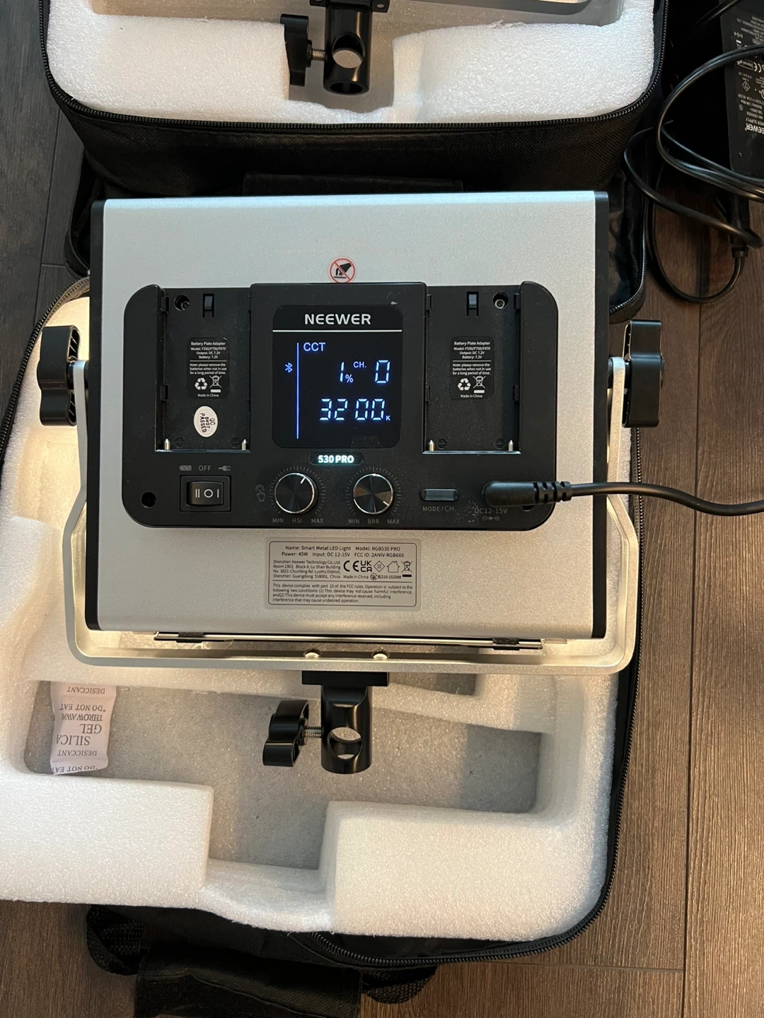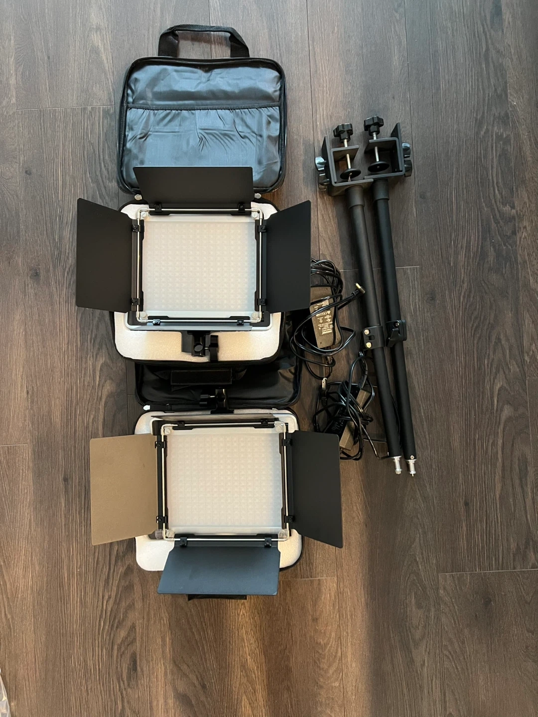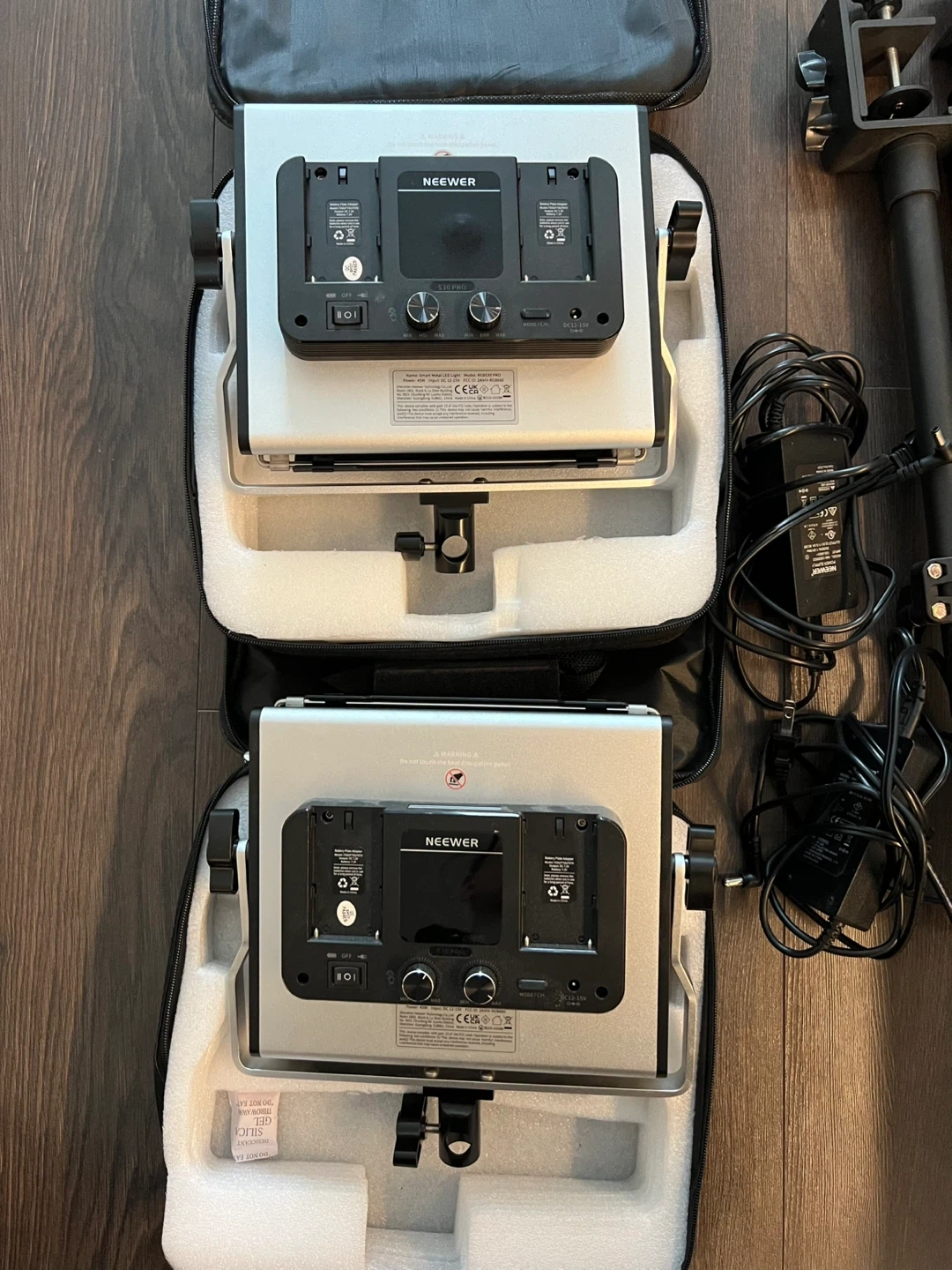 Two Neewer 530 PRO LED video lights are included in this kit. These lights offer adjustable brightness and colour temperature. They're perfect for photography and videography setups.