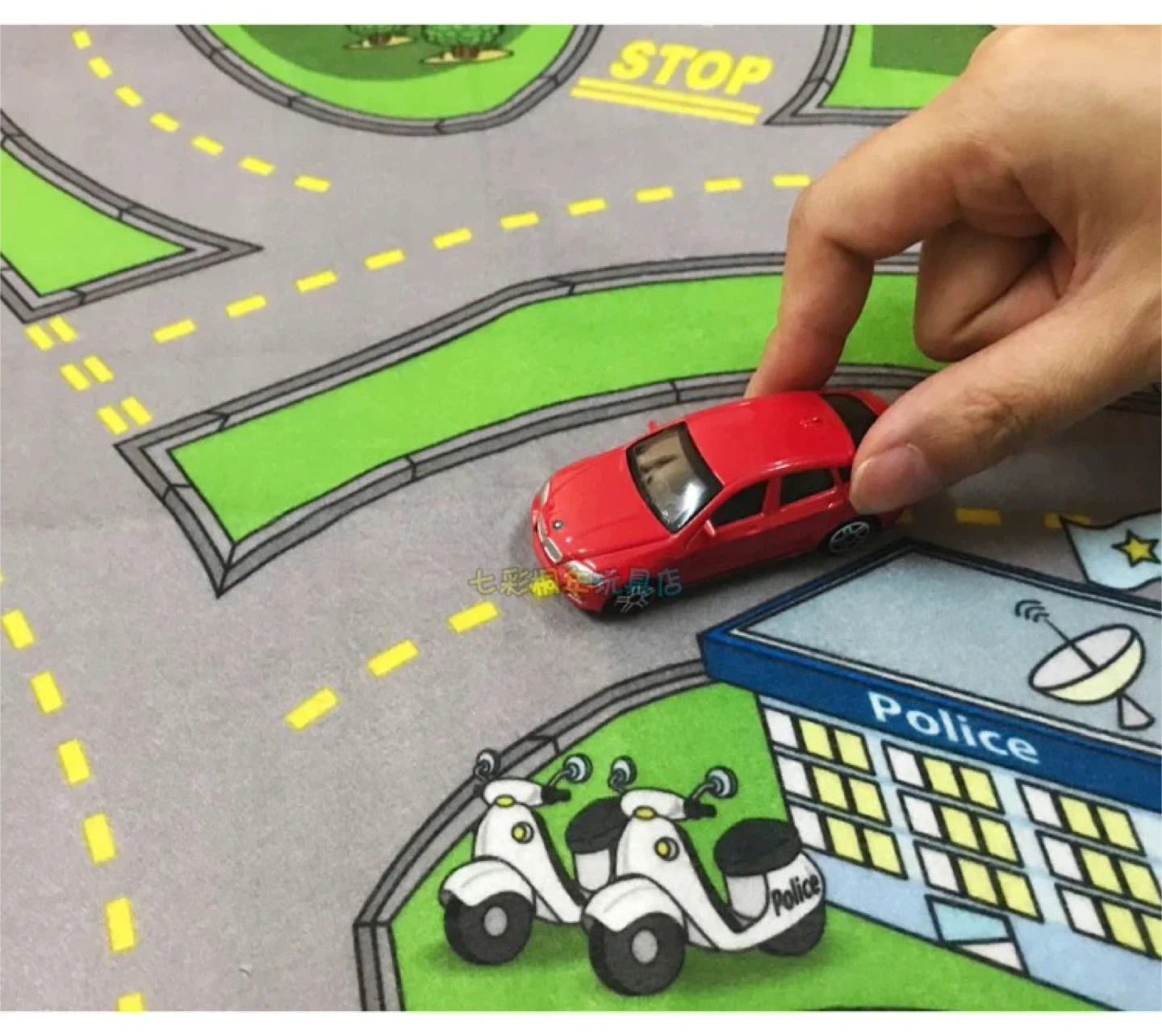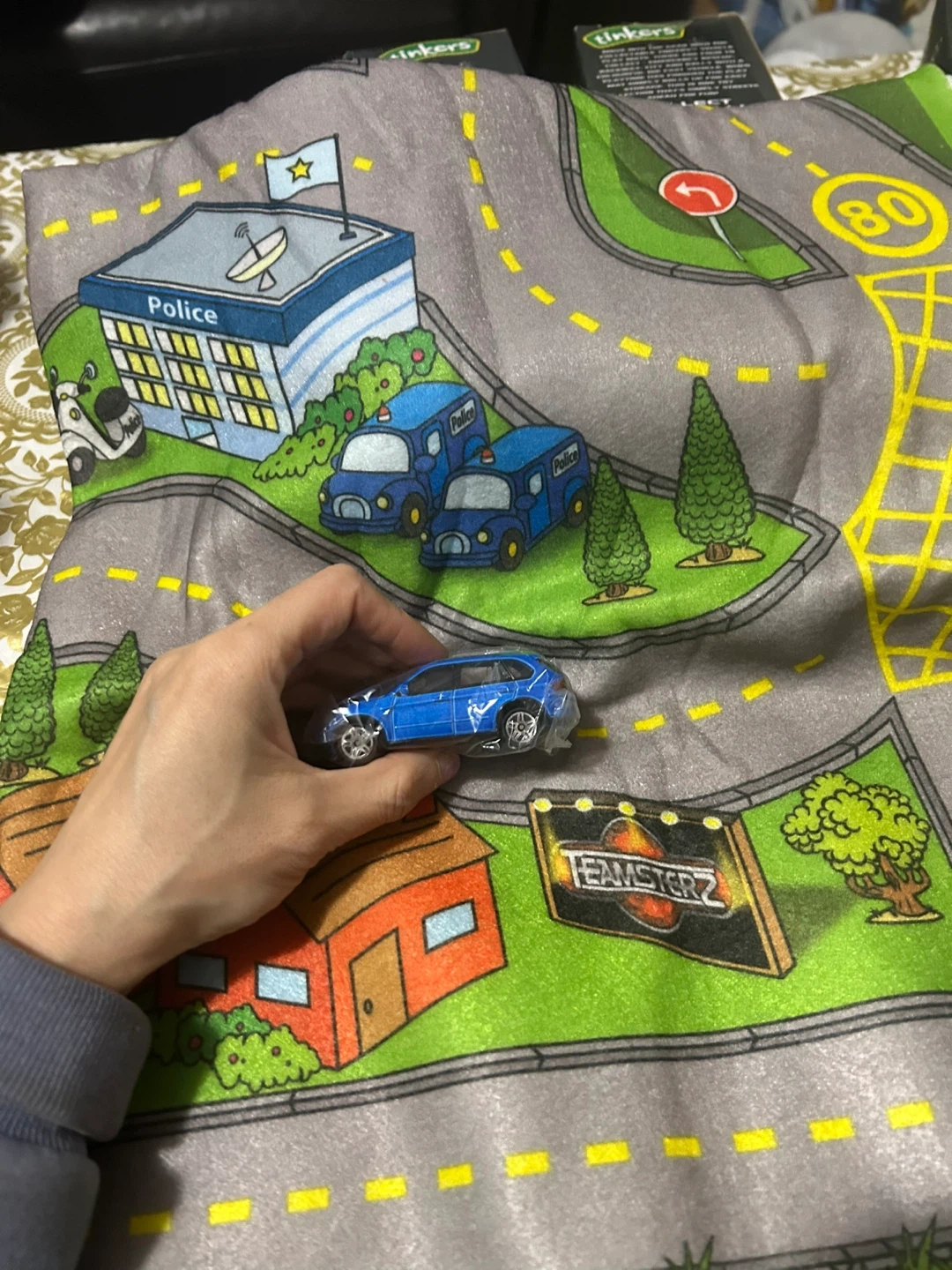 There are 4 boxes. Each box has one metal car and one 69cm *79cm play mat.