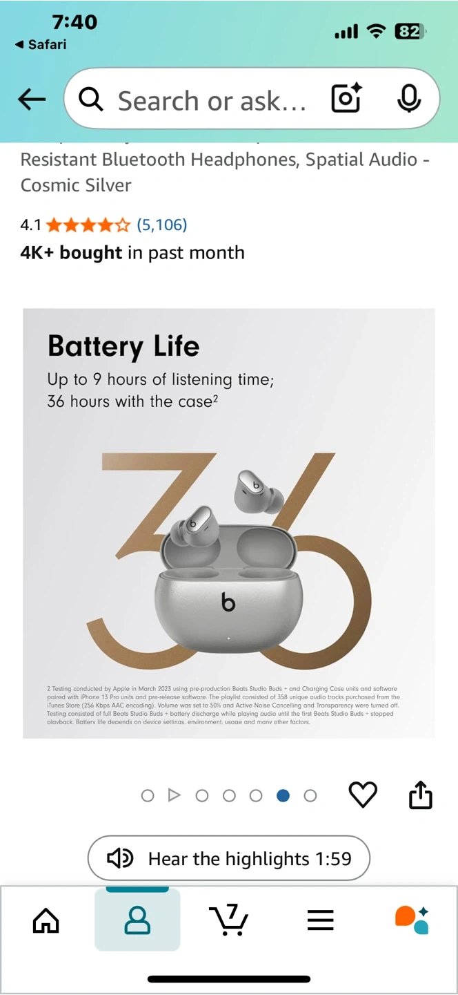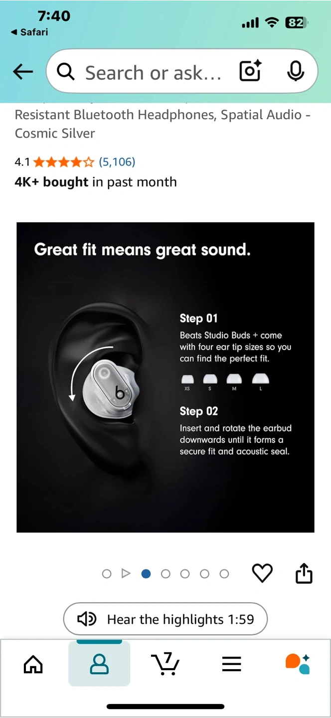 Selling a pair of Beats Studio Buds in Cosmic Silver! They are in great condition and come with their original case. Great fit means great sound!