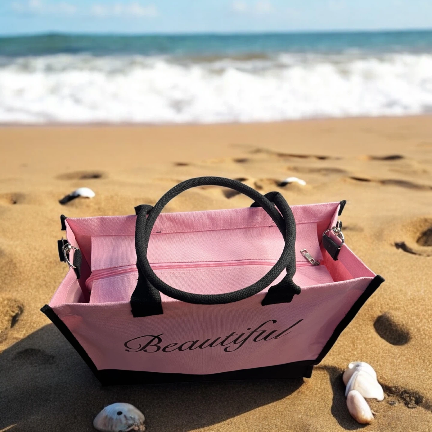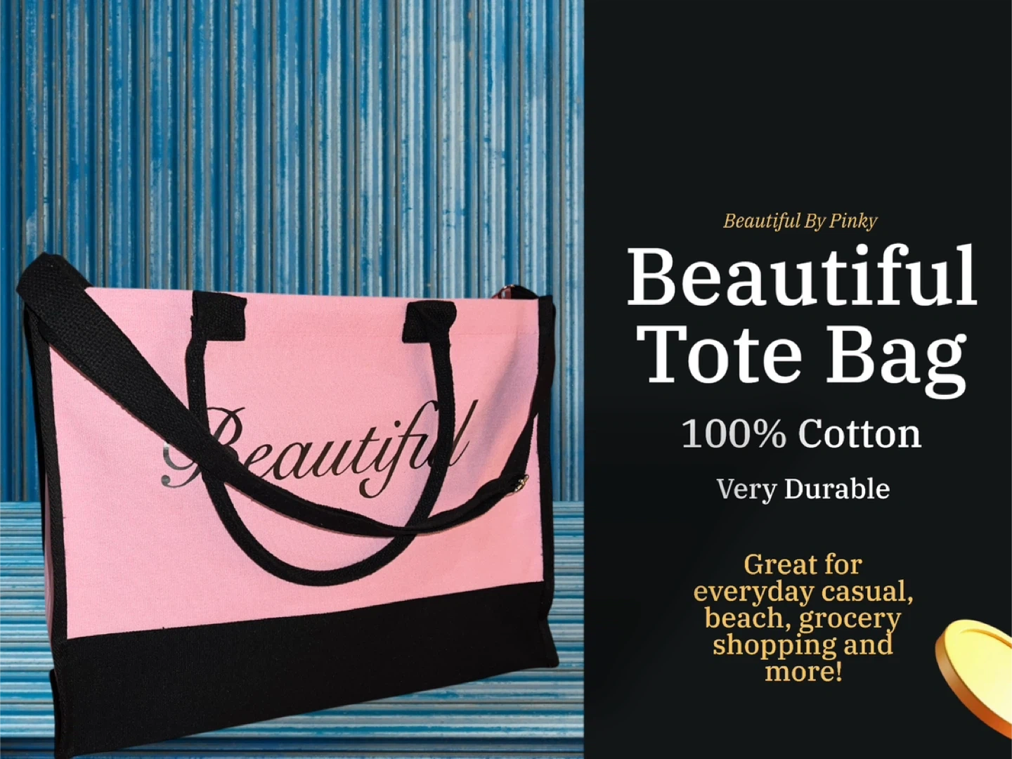 81Check out this beautiful tote bag by Beautiful By Pinky! It's made of 100% cotton, so it's very durable and perfect for everyday use. Great for casual outings, beach trips, grocery shopping, and more.. 17 inches wide and 14 inches high and 6 inches back. Durable and 2 hand straps and one adjustable shoulder strap.
