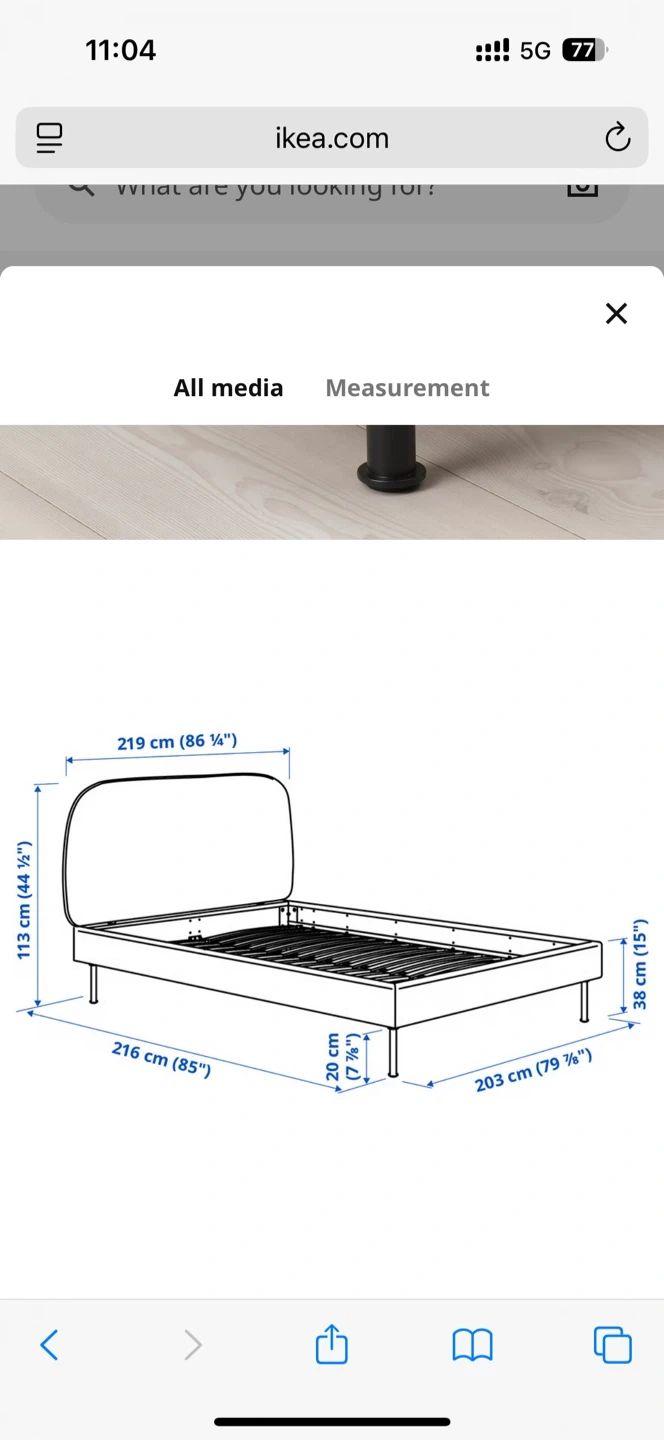 Beautiful kingsize bedframe (without matras) from IKEA. New price is $699. The name is Vadheim. It’s only half a year old and stood in our guest bedroom so has only been used a few times and is in perfect condition. Available for pickup until the 20th of October.