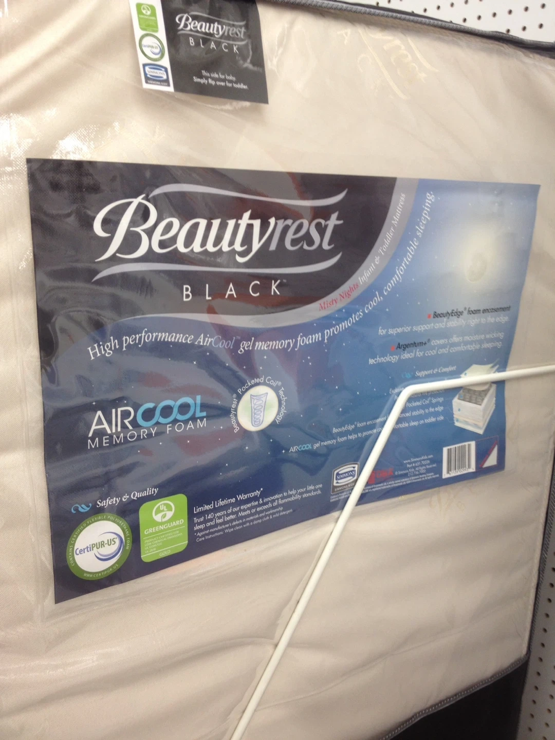 Selling a Beautyrest Black Toddle AirCool Memory Foam Crib Mattress in like new condition. Barely used and well cared for. ✔️ Dual-sided design – firm side for infants, softer memory foam side for toddlers ✔️ AirCool memory foam helps with airflow and keeps baby comfortable ✔️ Hypoallergenic, CertiPUR-US® certified, and safe for babies and toddlers ✔️ Water-resistant, removable cover – easy to clean ✔️ Fits standard cribs and toddler beds Dimensions: approx. 52” x 28” x 6” Also includes: Beautyrest Black crib mattress protector! It's encased and zippered for all-around mattress protection. It's also waterproof and helps to reduce allergens in the sleep environment, ensuring better sleep and better protection for your baby's health