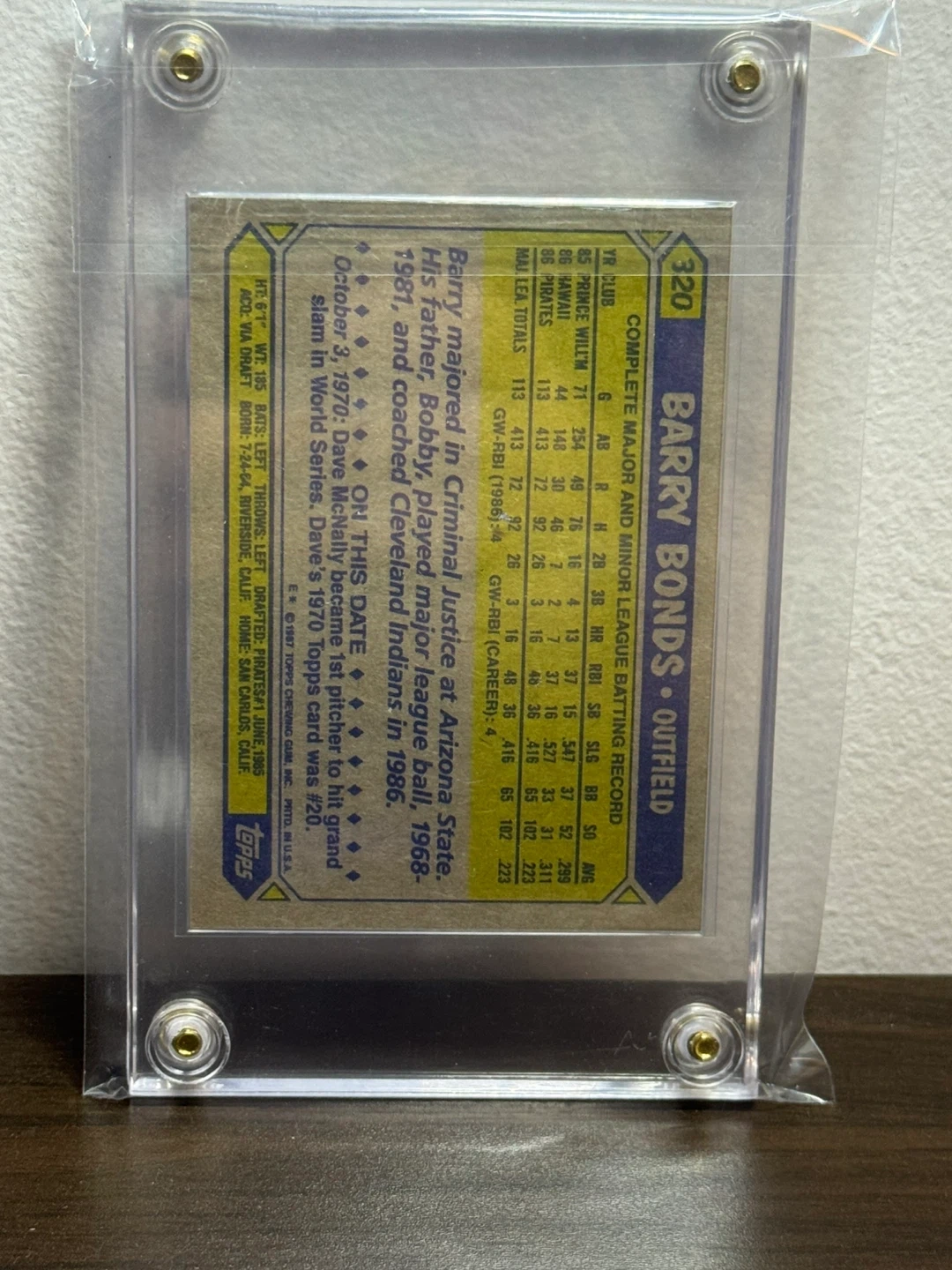 Barry Bonds 1987 Topps Baseball Card RC