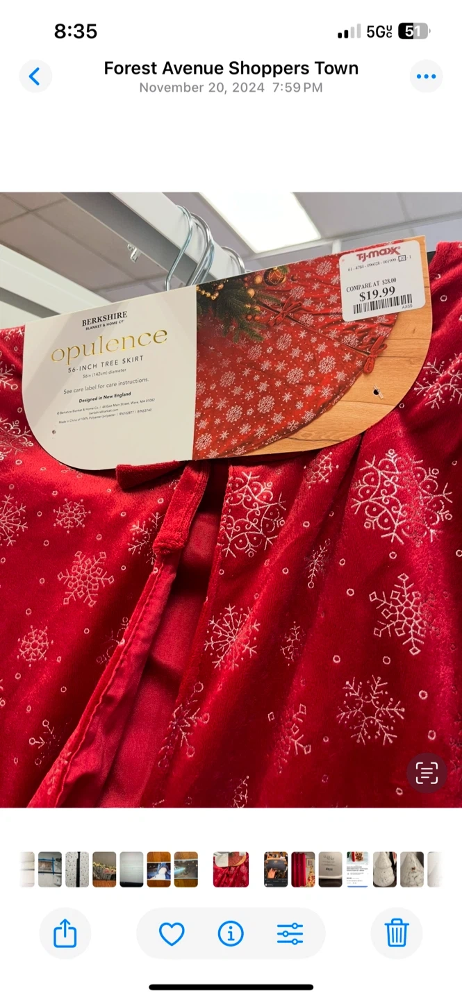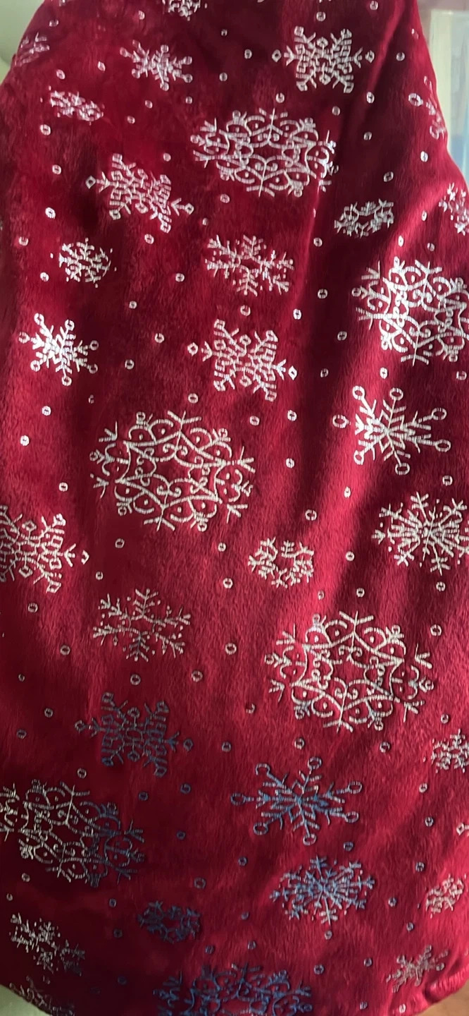 15I'm selling a Berkshire Opulence 56-inch tree skirt! It's a beautiful red color with snowflake designs. The tag shows it was originally priced at $24.99.