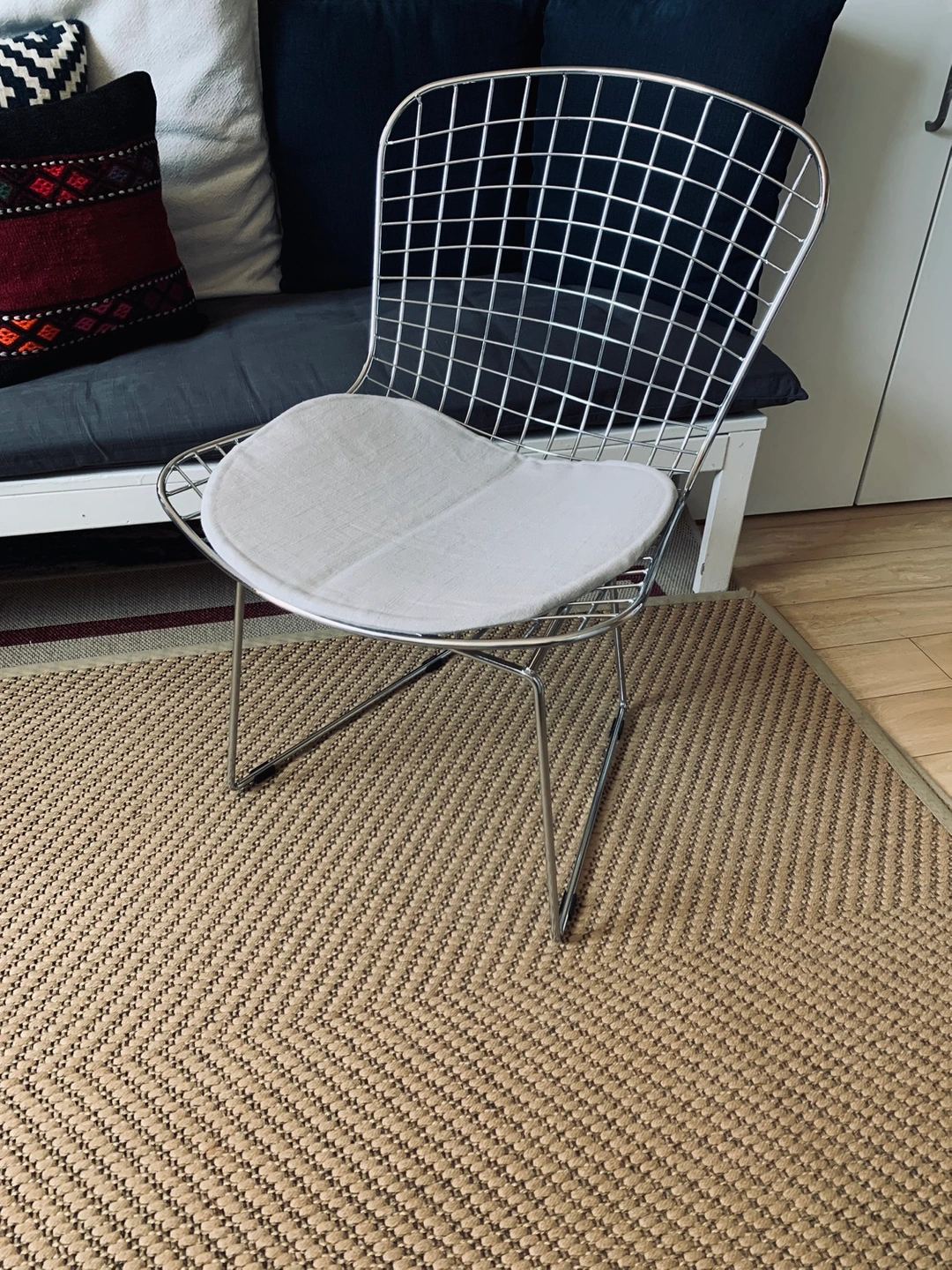506Harry Bertoia inspired chrome wire frame chair. It is a Modern, super comfortable chair that can be great addition to any room. Retails for $290(Walmart) Total height- 31” Widest part of chair-20” Chair seat height from floor-17 1/2” ✅Yes, item is available 🤝Cash Only please 📍Pickup Only-Trinity Bellwoods Park area