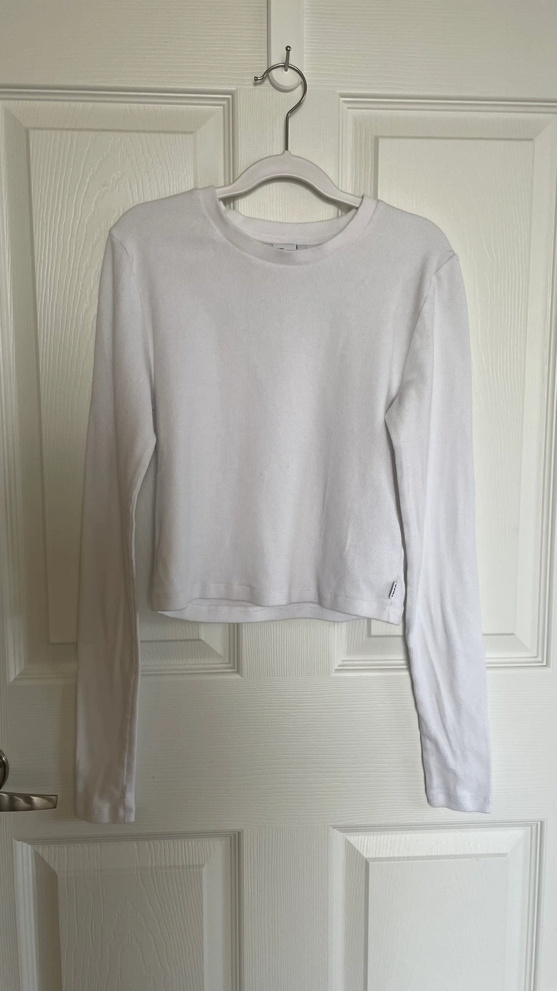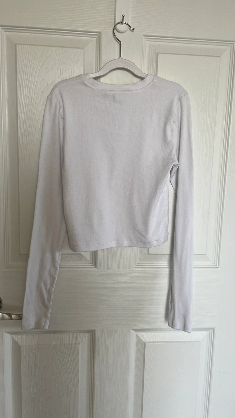Selling a TNA long sleeve top in white. It's a size medium and in great condition! Perfect for layering or wearing on its own
