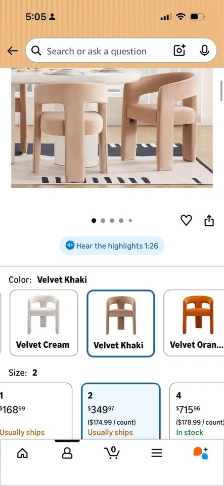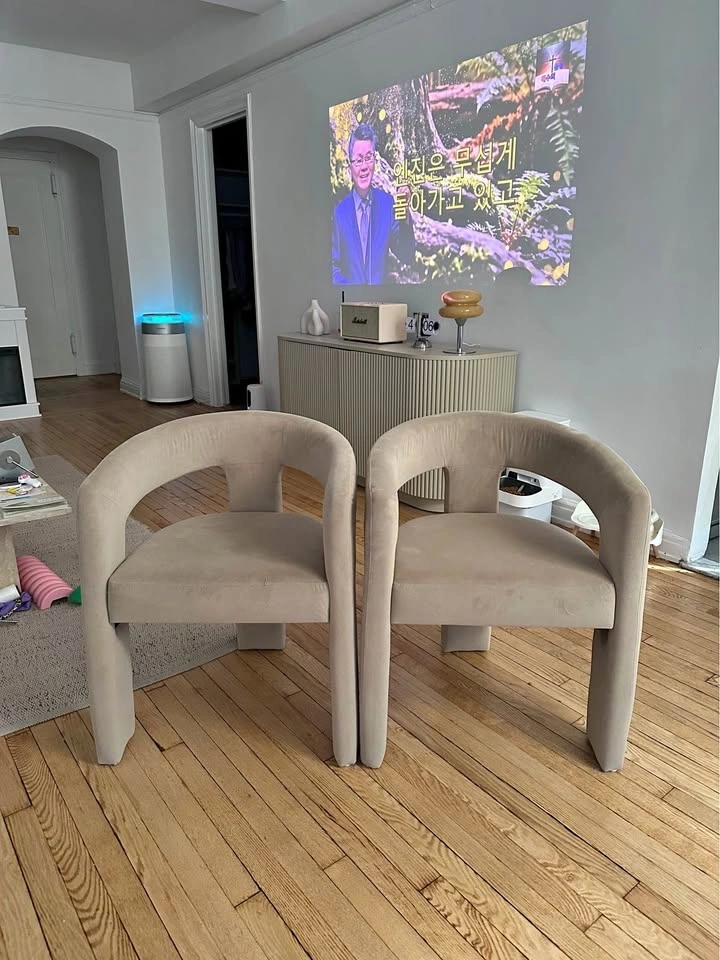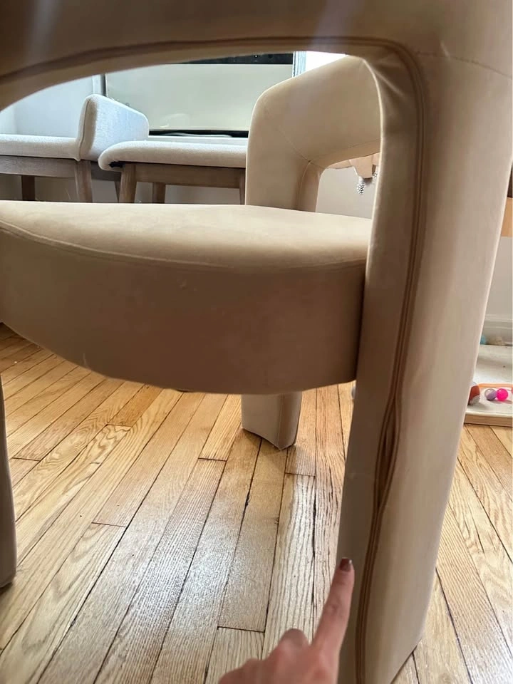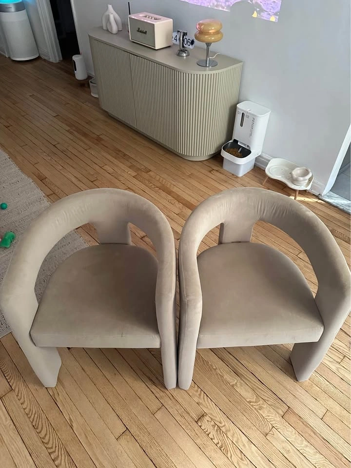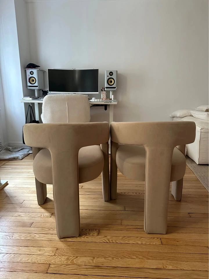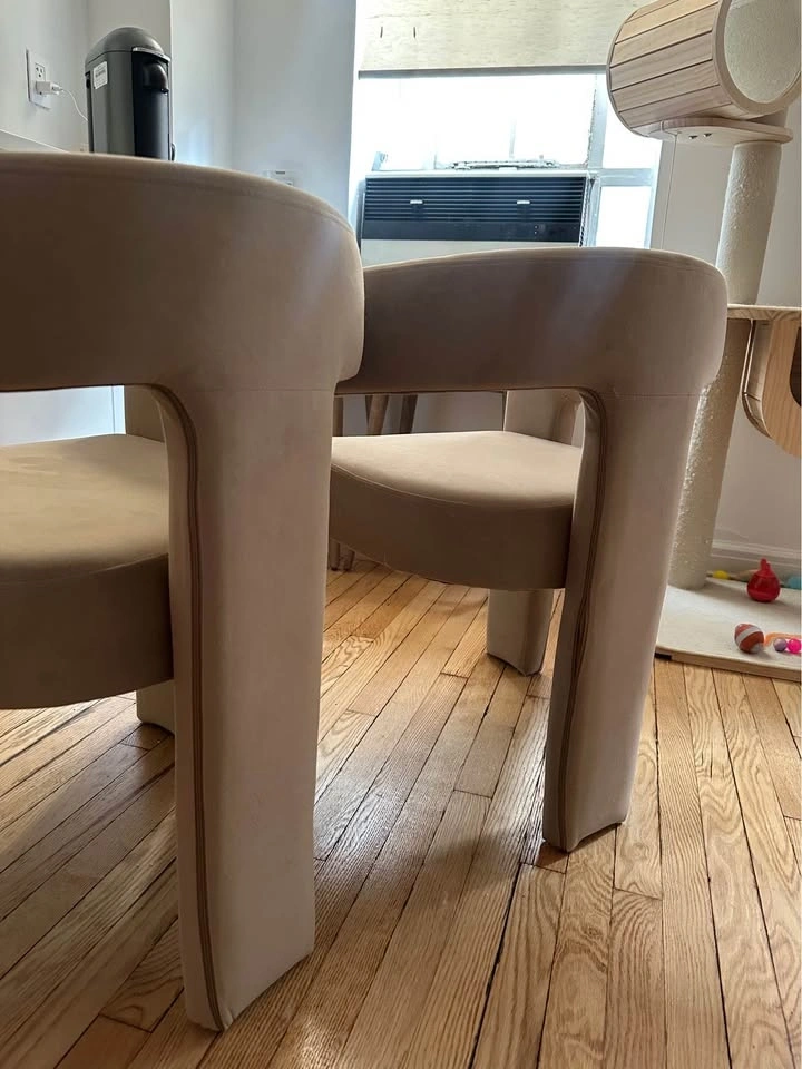 Moving sale! Beautiful upholstered velvet dining chair set. 21.25"D × 23.75"W x 29"H. Selling for $125 as I need to move out by 4/30. One of the leg zippers is popped but not sure how to fix it. Pick up on 56th & 8th.