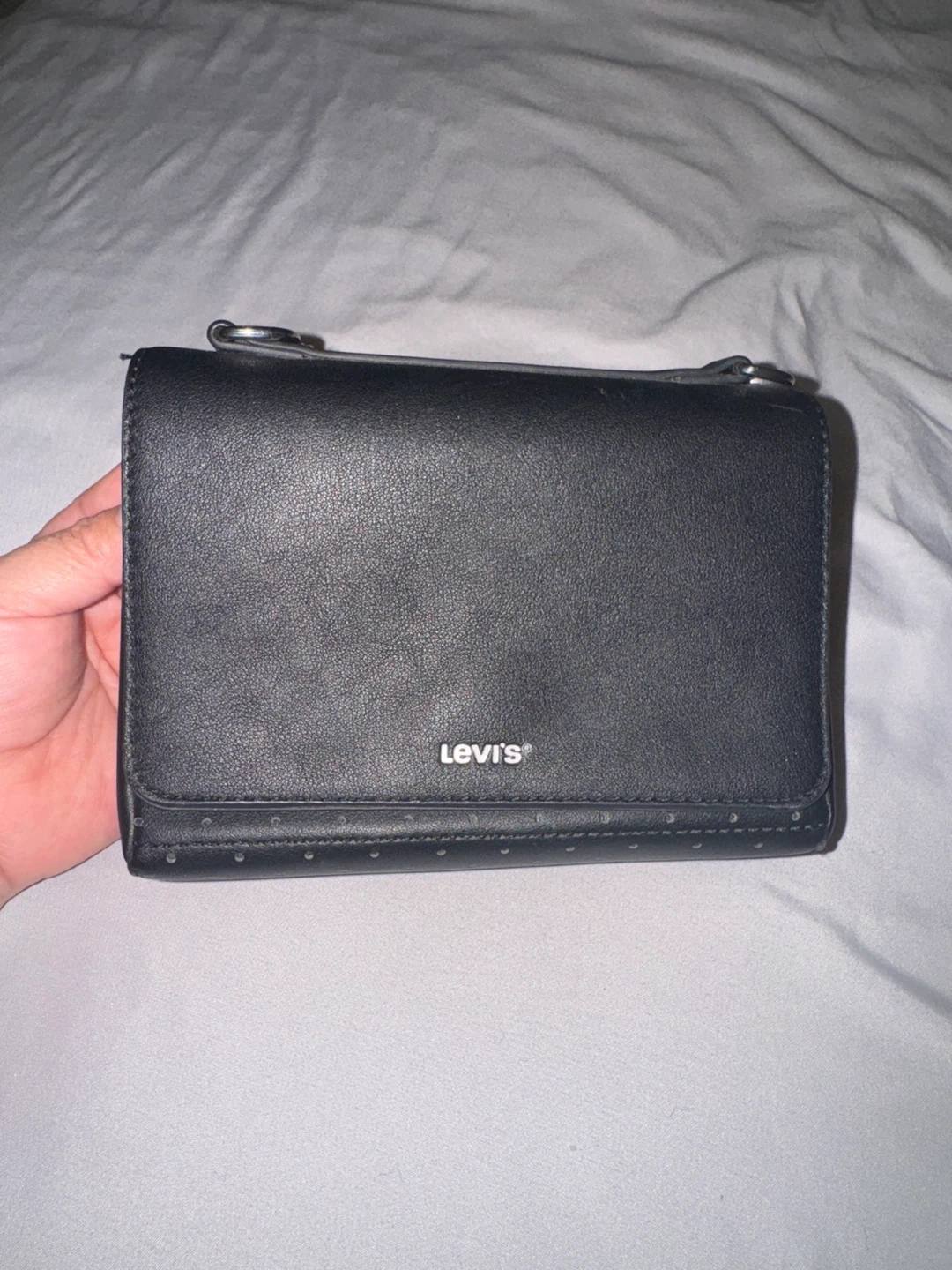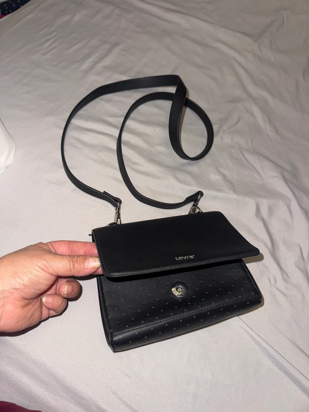 Cute Levi's black crossbody bag in great condition! It's perfect for carrying your essentials while keeping your hands free. The bag features a sleek design with the Levi's logo. It is made of a durable material and has a secure closure to keep your belongings safe and sound