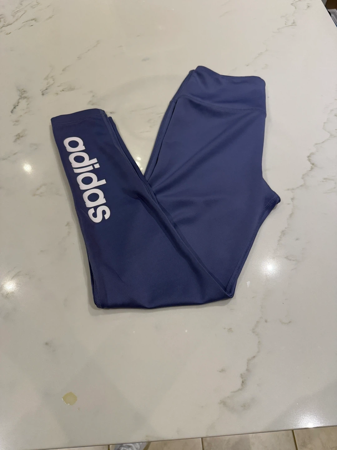 These Adidas leggings are in great condition! They're a lovely purple colour and feature the Adidas logo. Perfect for workouts or just lounging around
