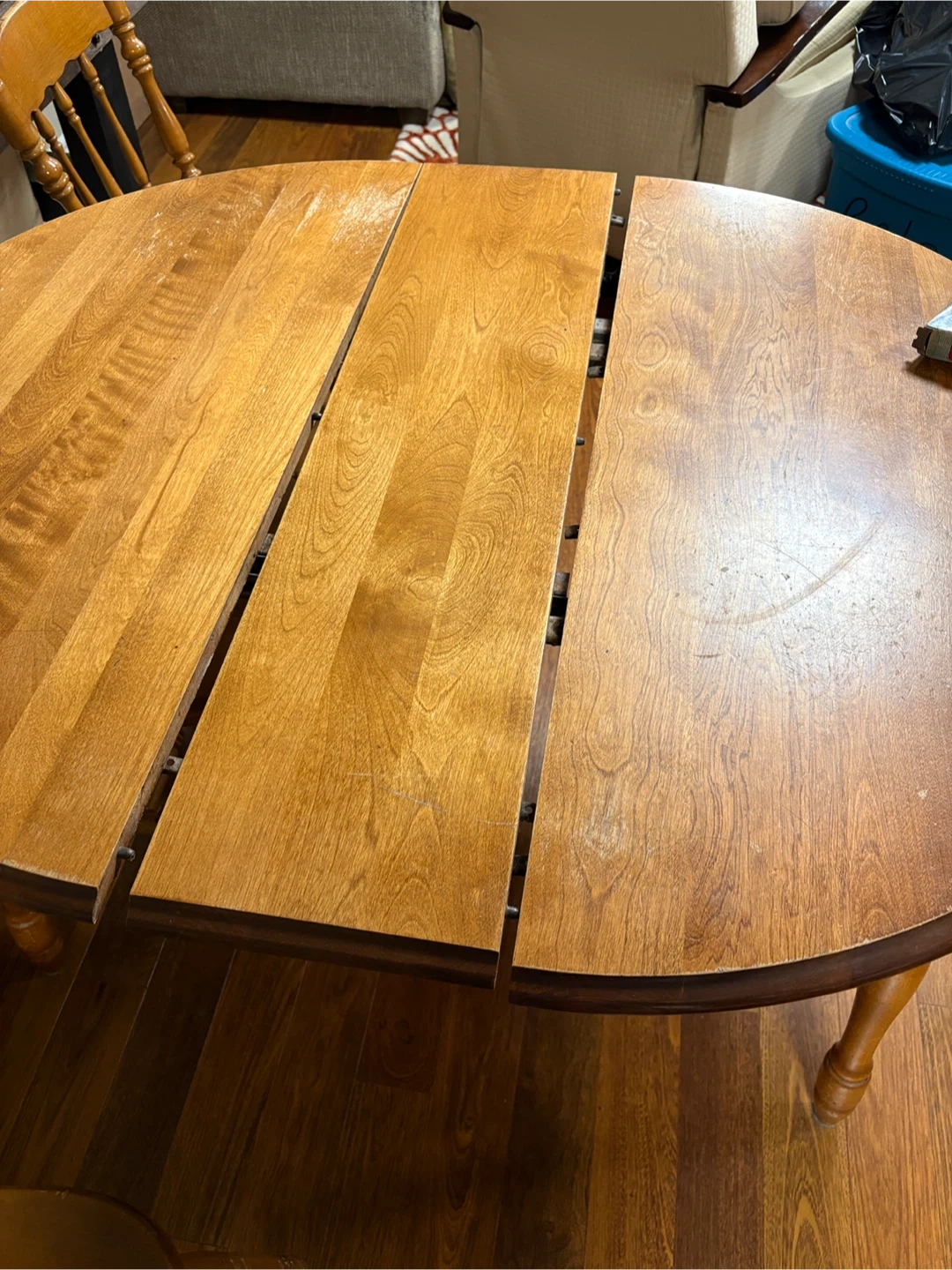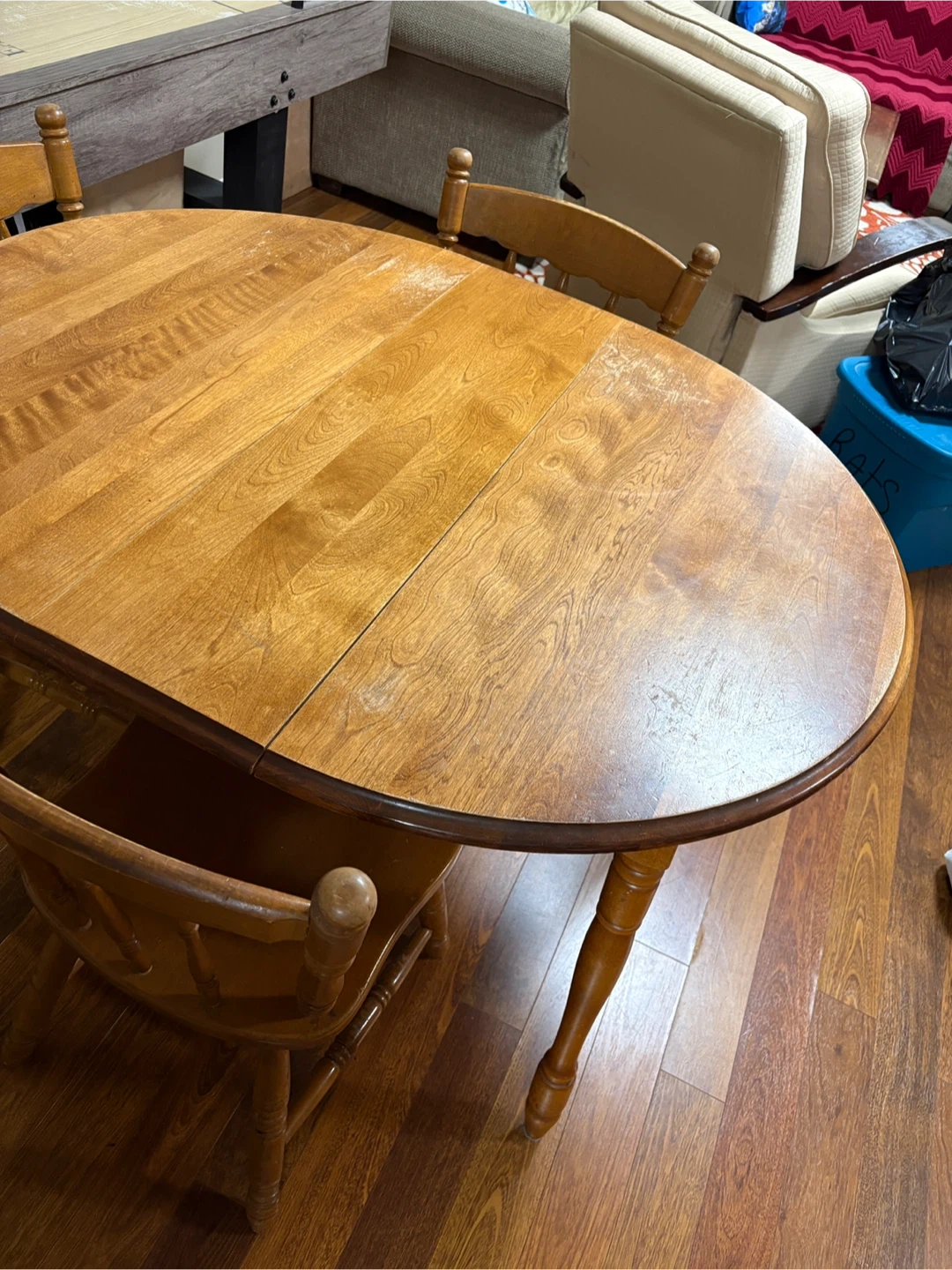 KITCHEN TABLE AND THREE CHAIRS IN GOOD CONDITION.