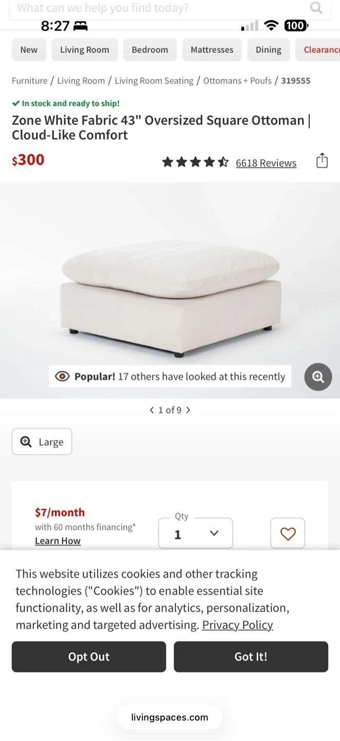 LIKE NEW Zone Cream 43" Oversized Square Ottoman
