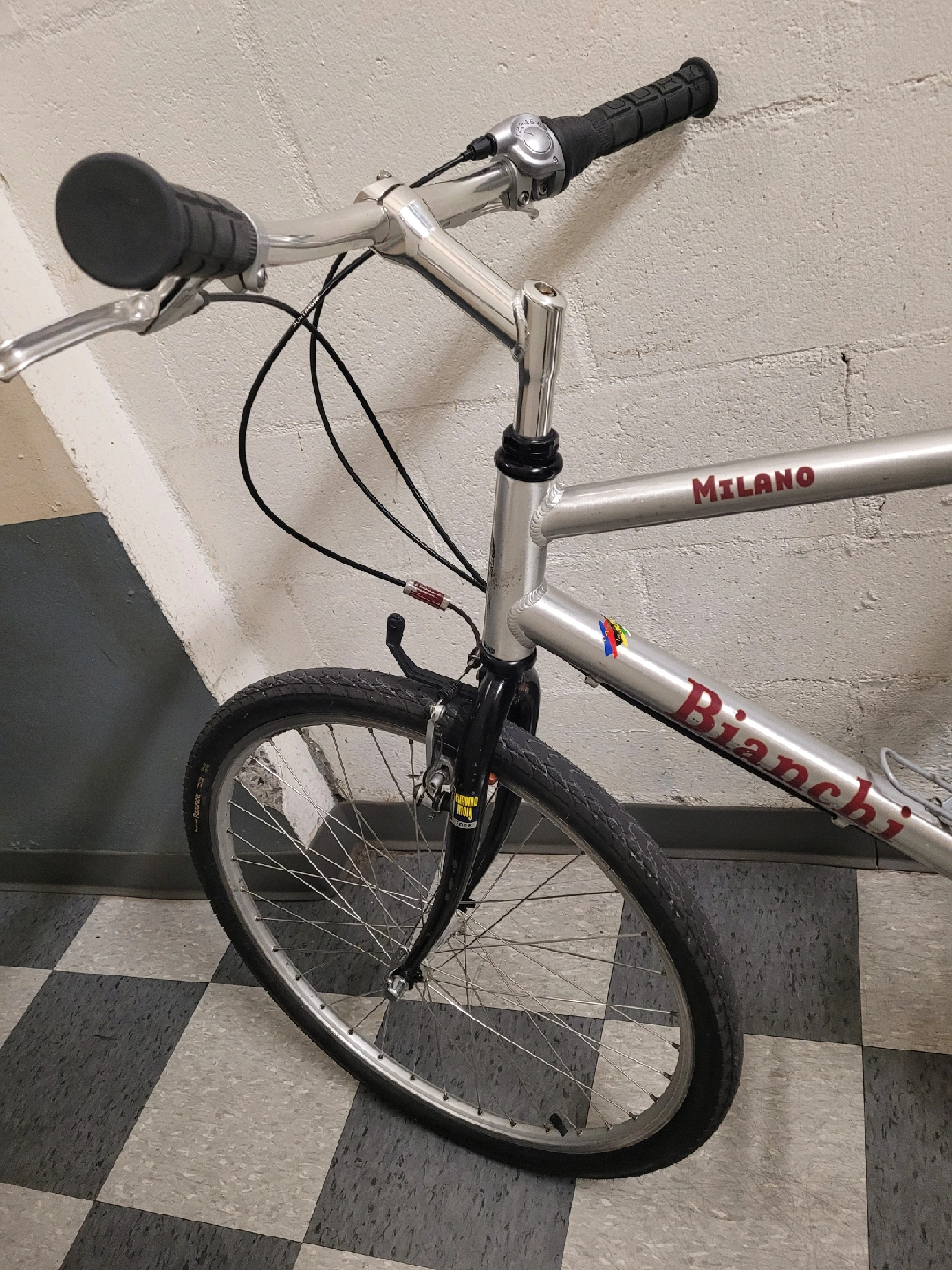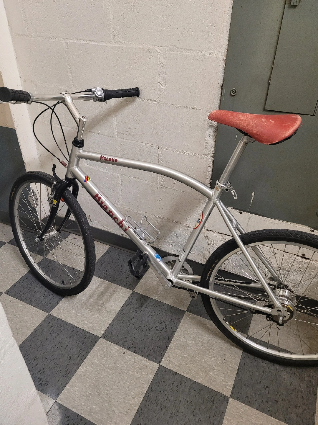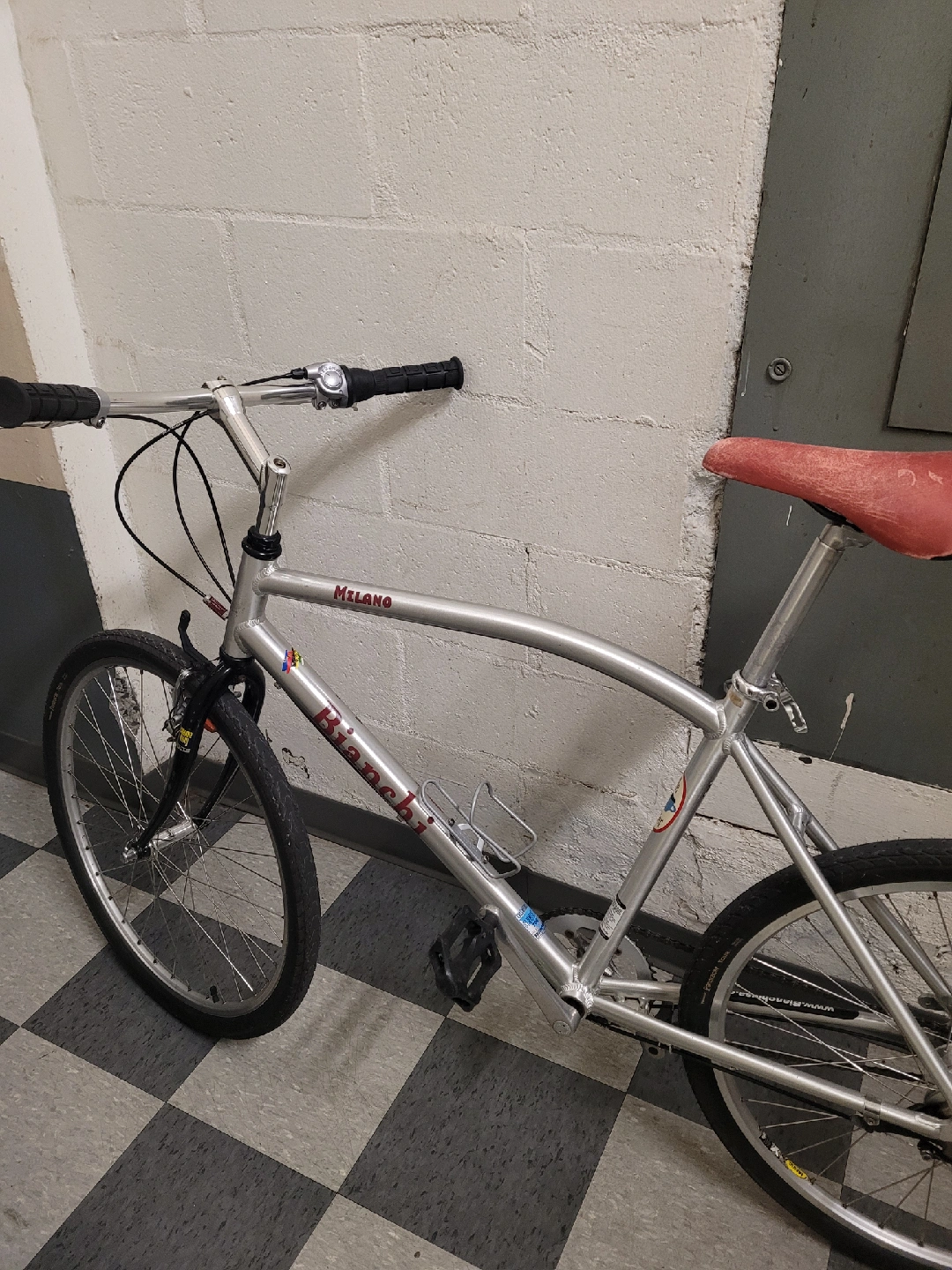 Selling a Bianchi Milano bicycle in silver. It's a great ride for getting around town!