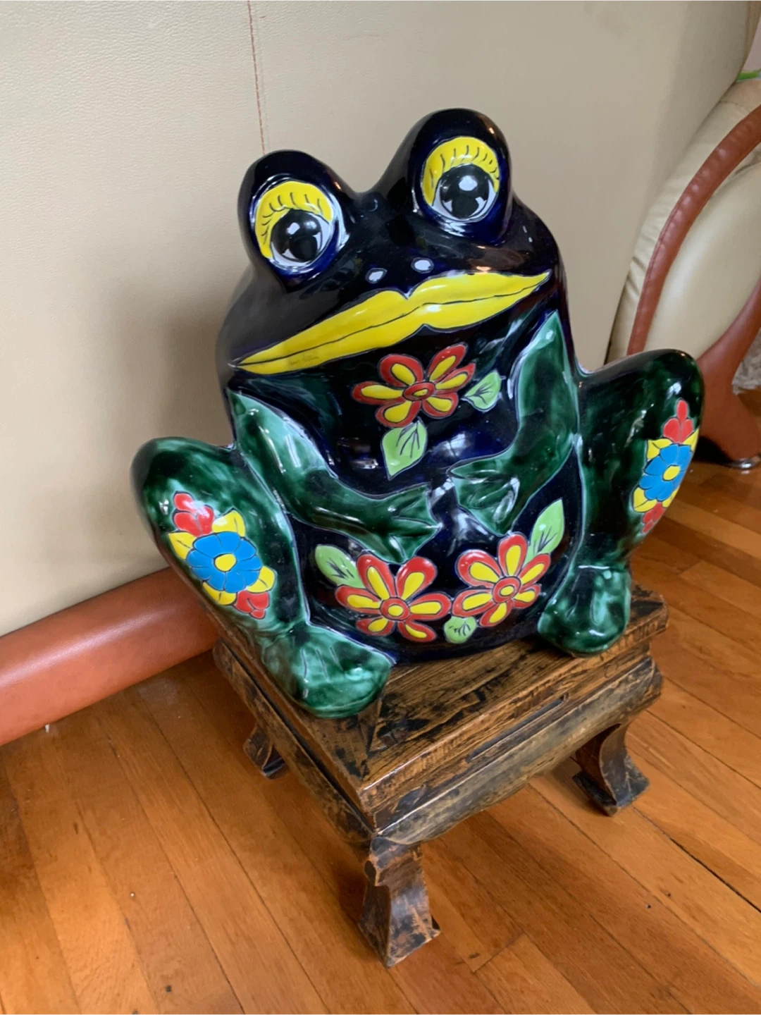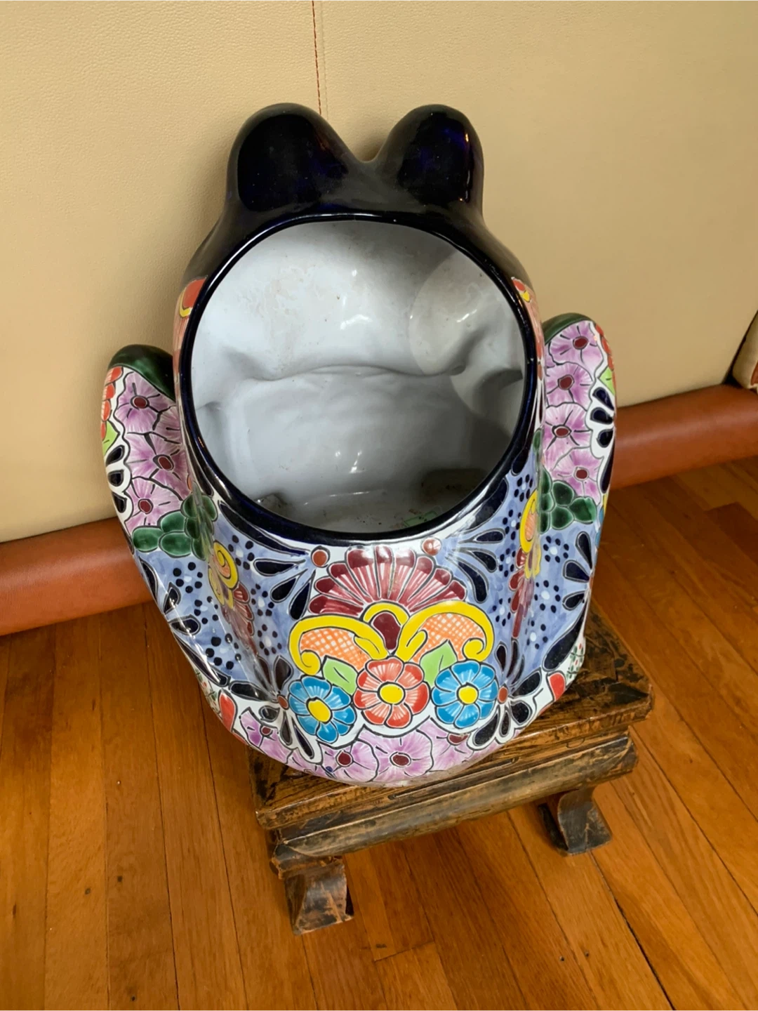 5This is a unique and colorful ceramic frog planter! It's perfect for adding a touch of whimsy to your home or garden. The planter is in great condition and features a beautiful floral design. It would make a lovely addition to any space