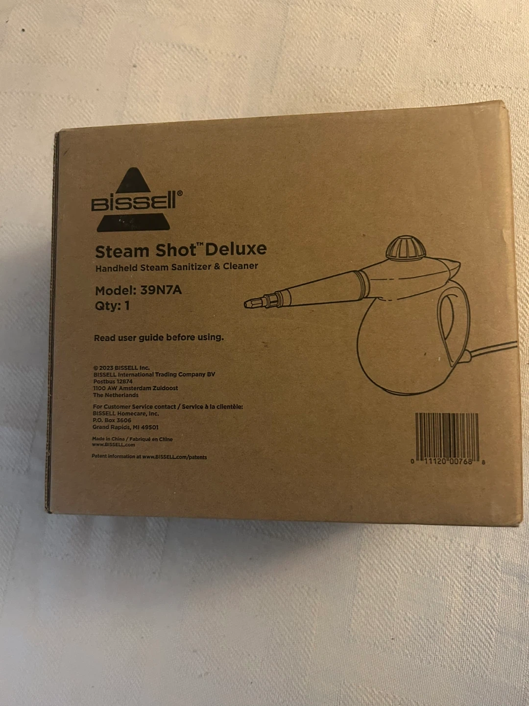 Selling a brand new Bissell Steam Shot Deluxe handheld steam sanitizer and cleaner! It's model 39N7A and comes in its original box. This is a great tool for quickly sanitizing surfaces around the house. Get yours today!