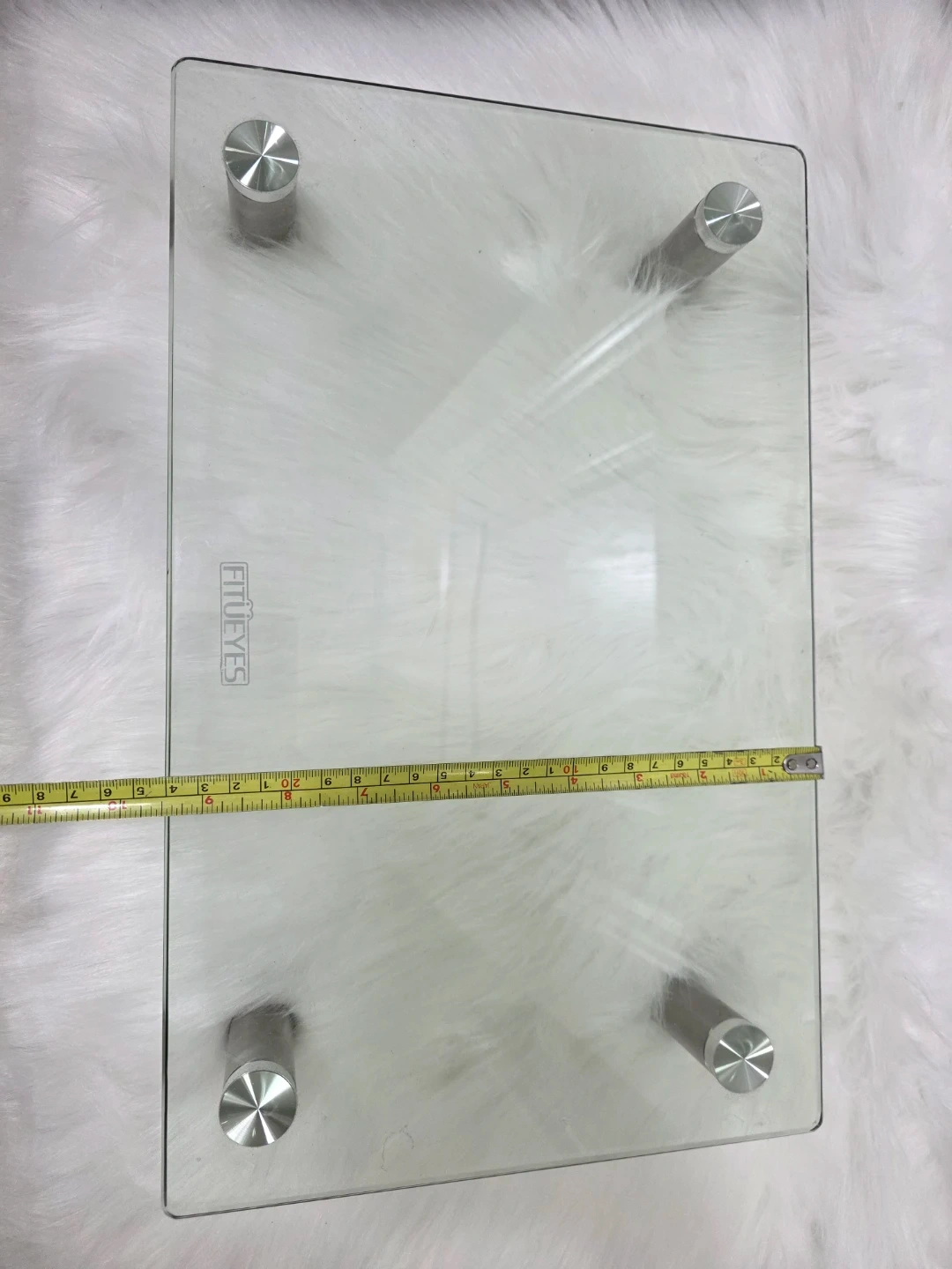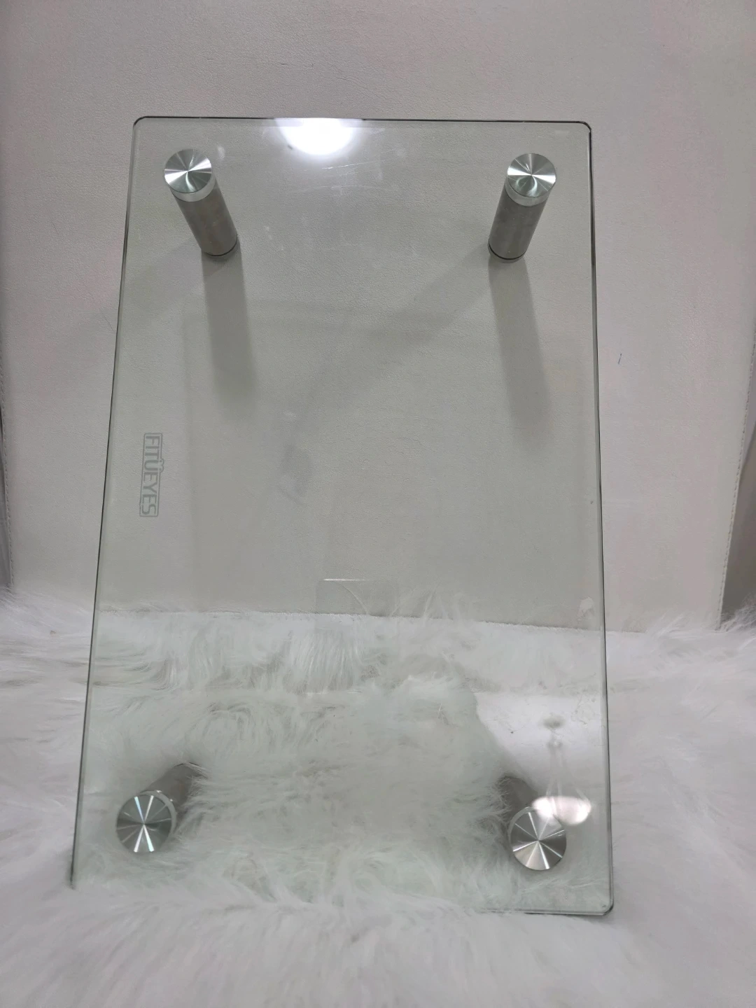 This FITUEYES monitor stand is made of tempered glass and metal legs.