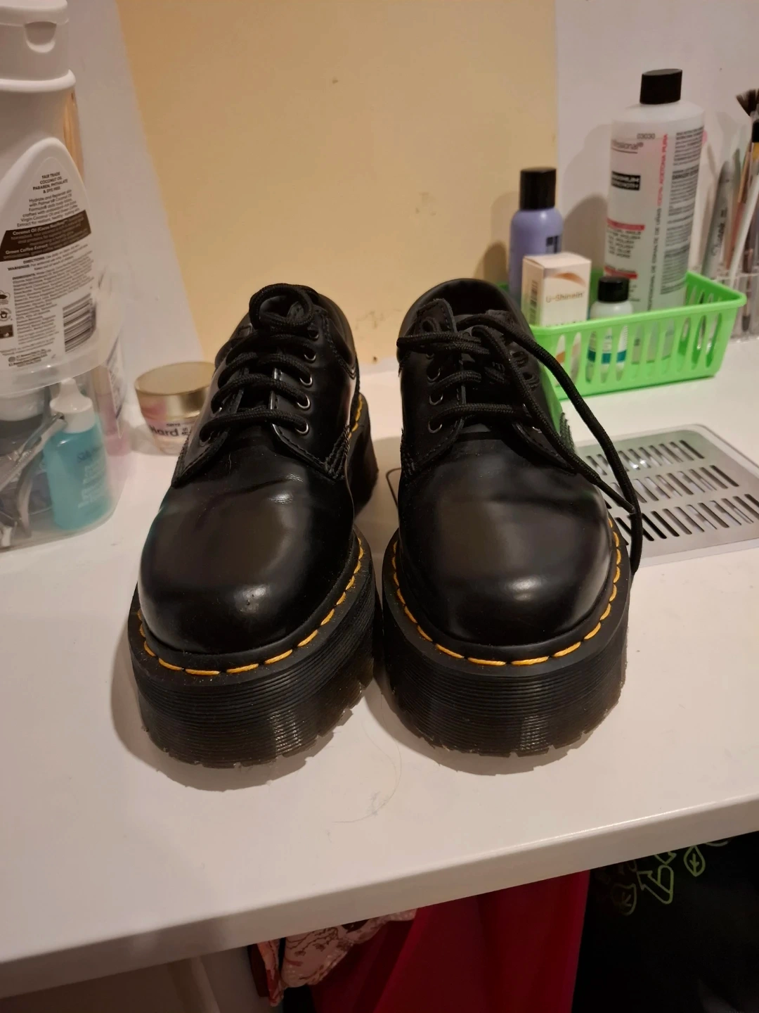 Selling a pair of Dr. Martens 8053 Quad platform shoes in US size 6! These shoes are black and have a platform sole. Comes with a tin of Dr. Martens Dubbin.