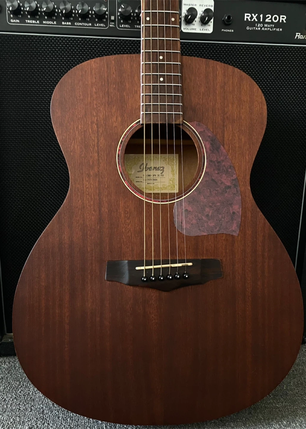 Ibanez Grand Concert Mahogany Acoustic with Guitar Stand, Capo- $250
