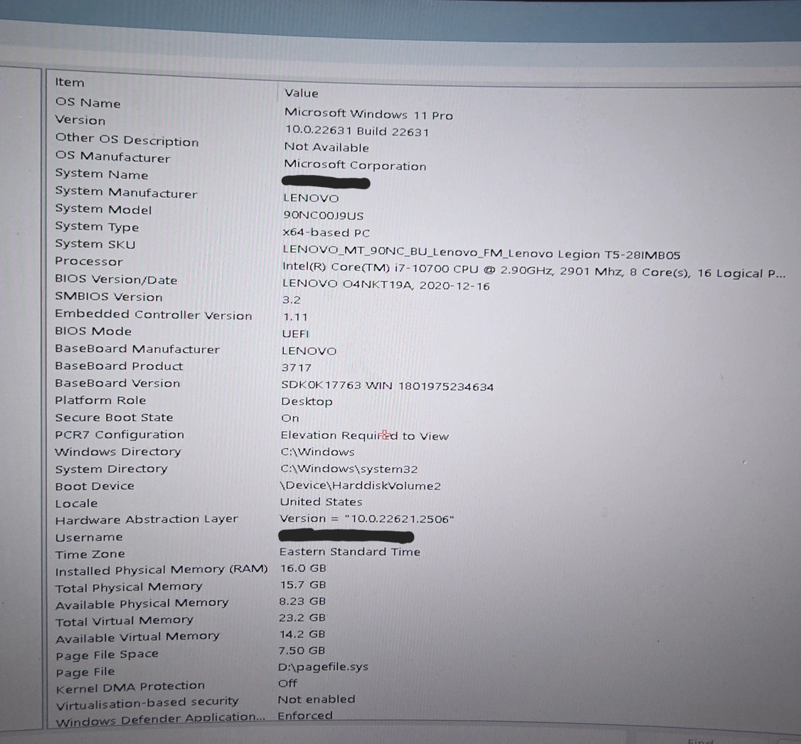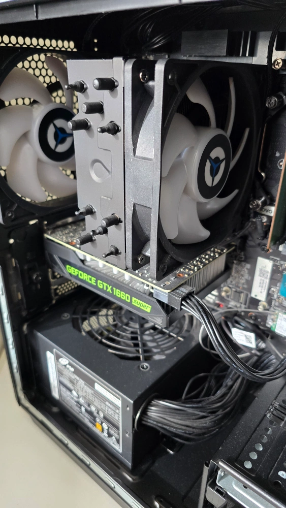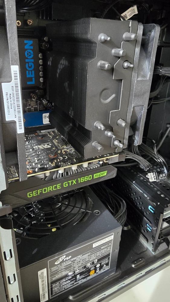 Lenovo Legion desktop computer, model 90NC001JUS. It has an Intel Core i7-10700 CPU and 16GB RAM. Includes a GeForce GTX 1660 Super graphics card. Runs Windows 11 Pro. The CPU power: base 2.9, but runs more than 4.58. SSD (NVMe) 256 GB, HHD 1 TB (SATA)