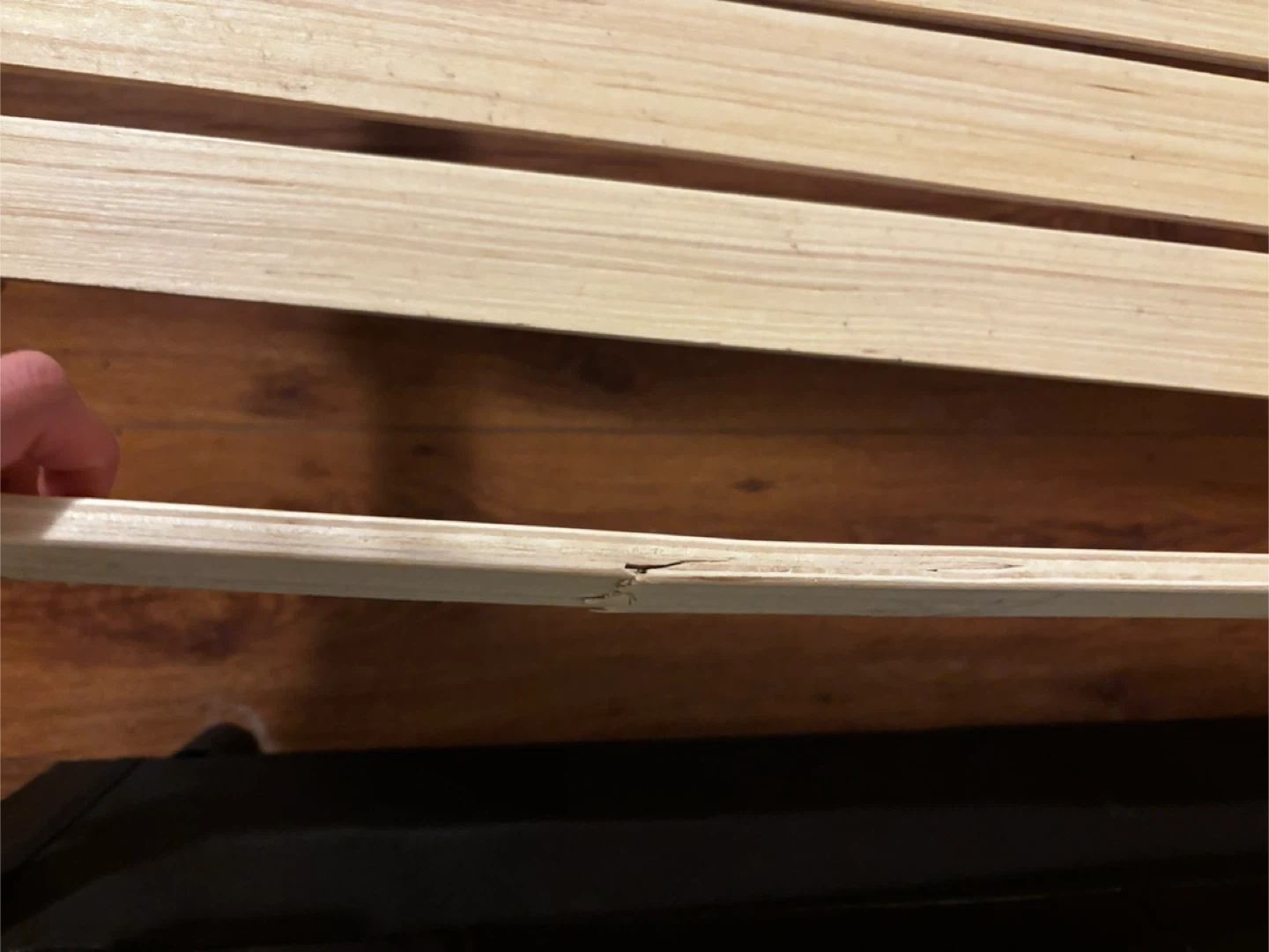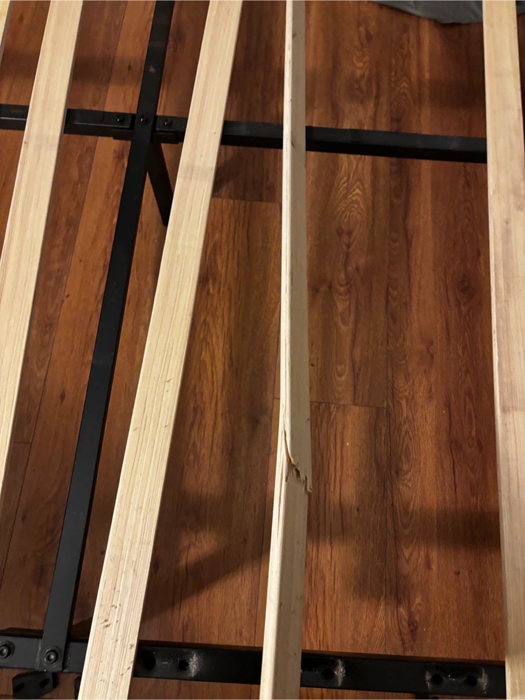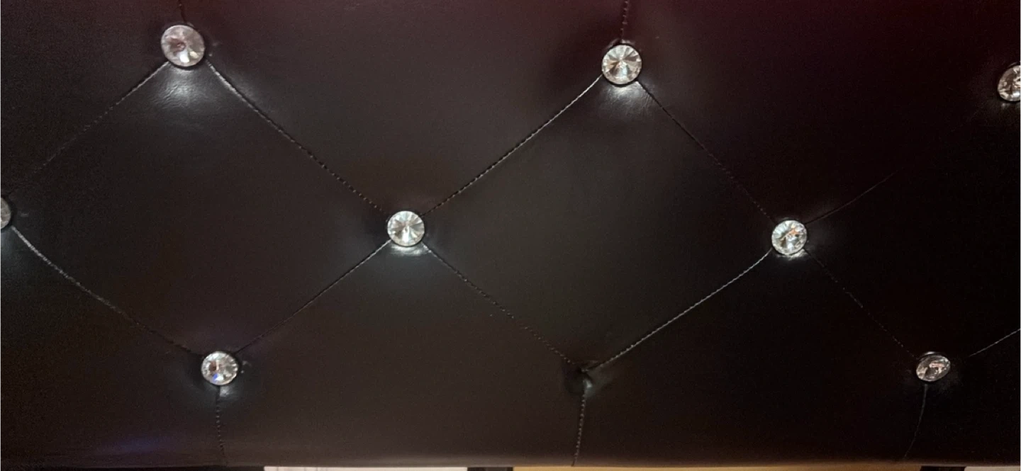 32Please note that 2 of the wooden slats is damaged and There is 1 missing rhinestones can easily be fixed with wood glue. Selling a black bed frame with a faux leather headboard. The headboard has embedded decorative rhinestones and an LED light strip.