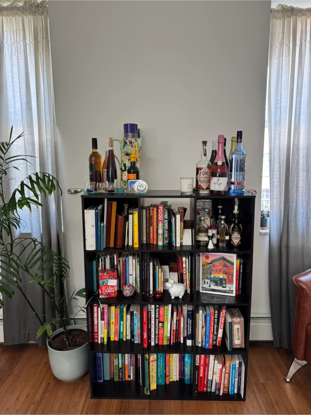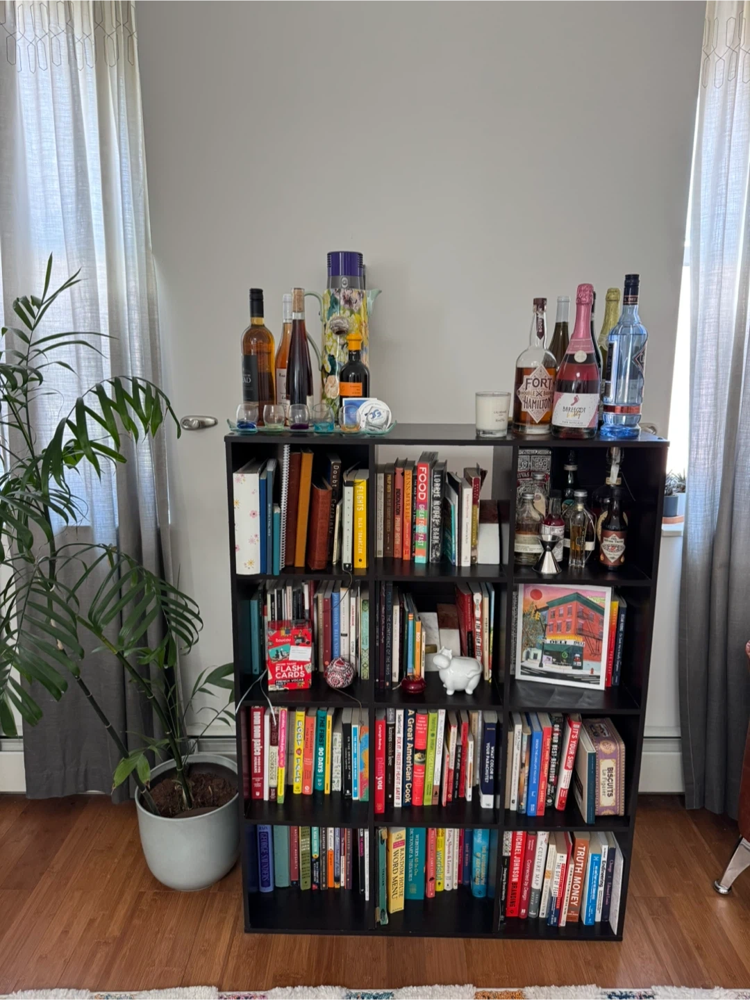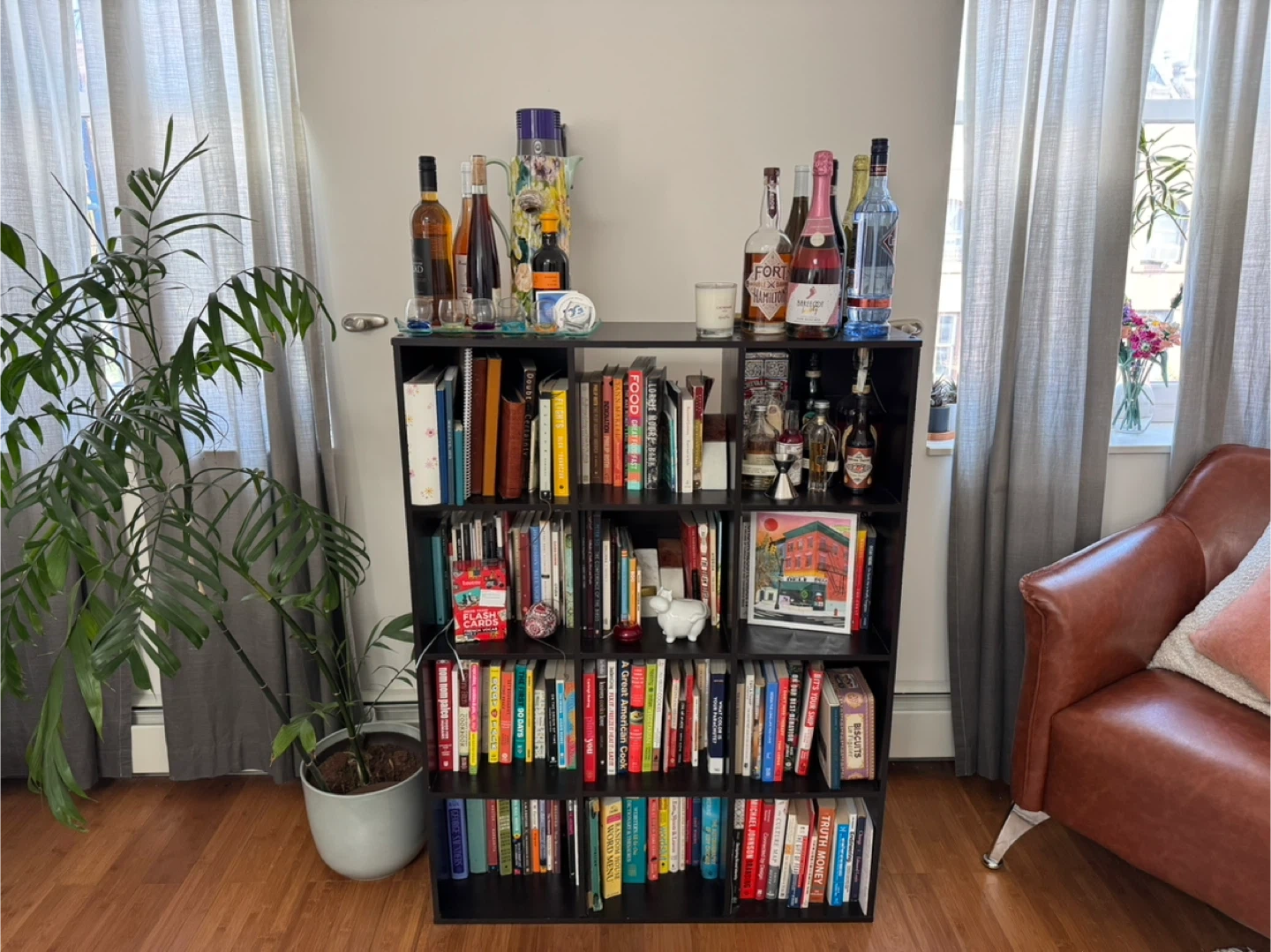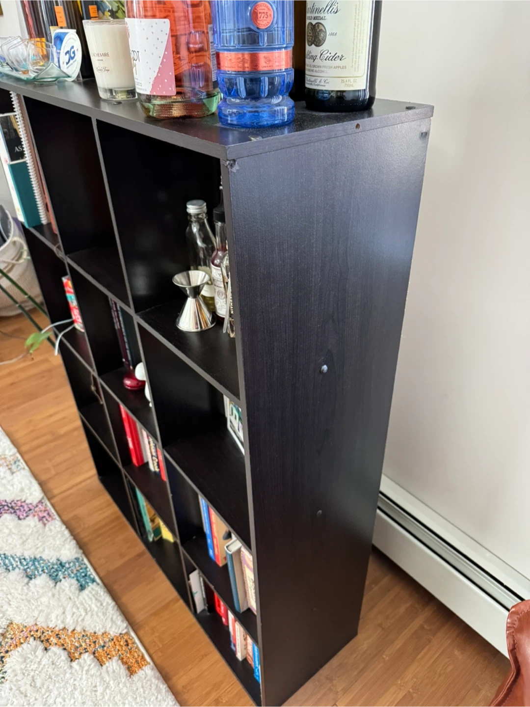 Here's a black bookshelf available for a new home! It has multiple shelves for storing books, decorations, or anything you'd like to display. It's in good condition, aside from some normal wear and tear no one will notice once it’s full of your items! Retail price can be up to $130!