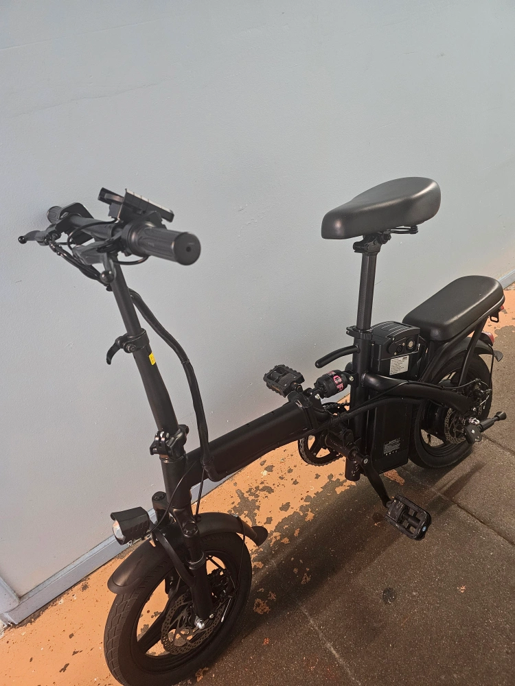 Selling a black electric folding bike. It's in good condition and ready for a new owner. Perfect for commuting or leisurely rides around town!
