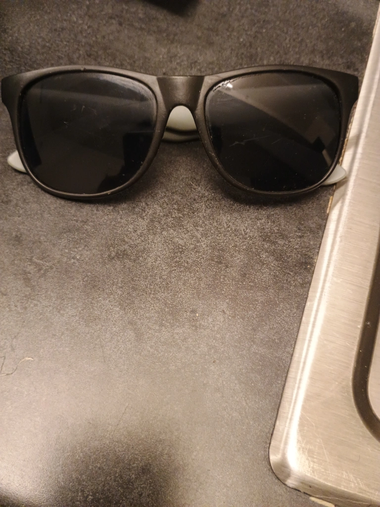 Selling a pair of black framed sunglasses. They're in good condition and ready for sunny days