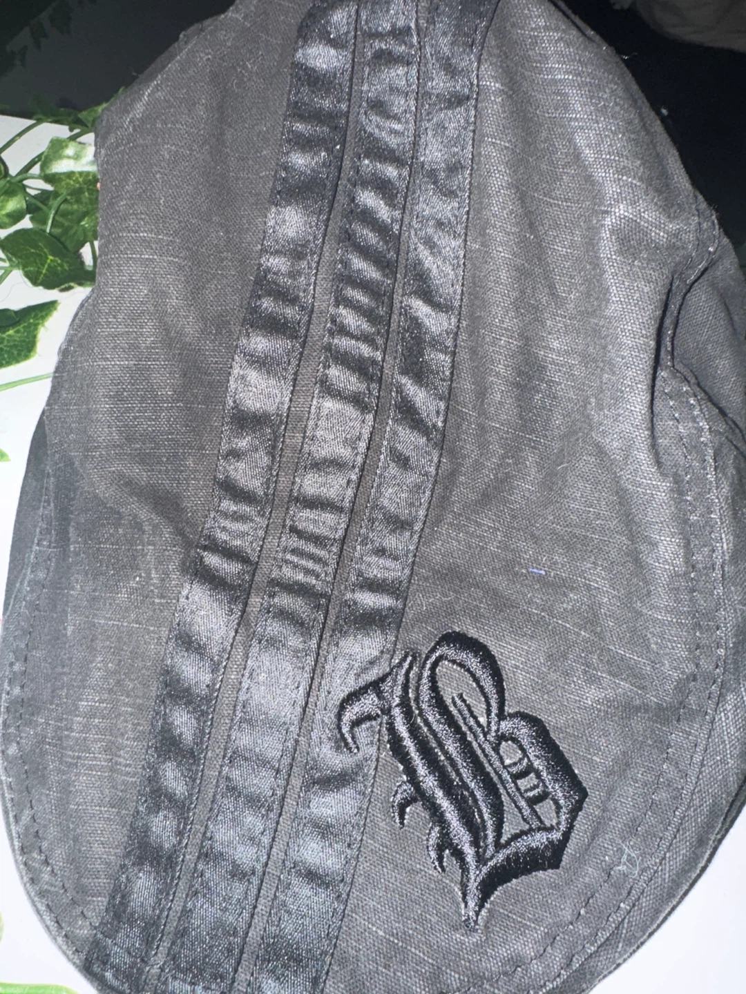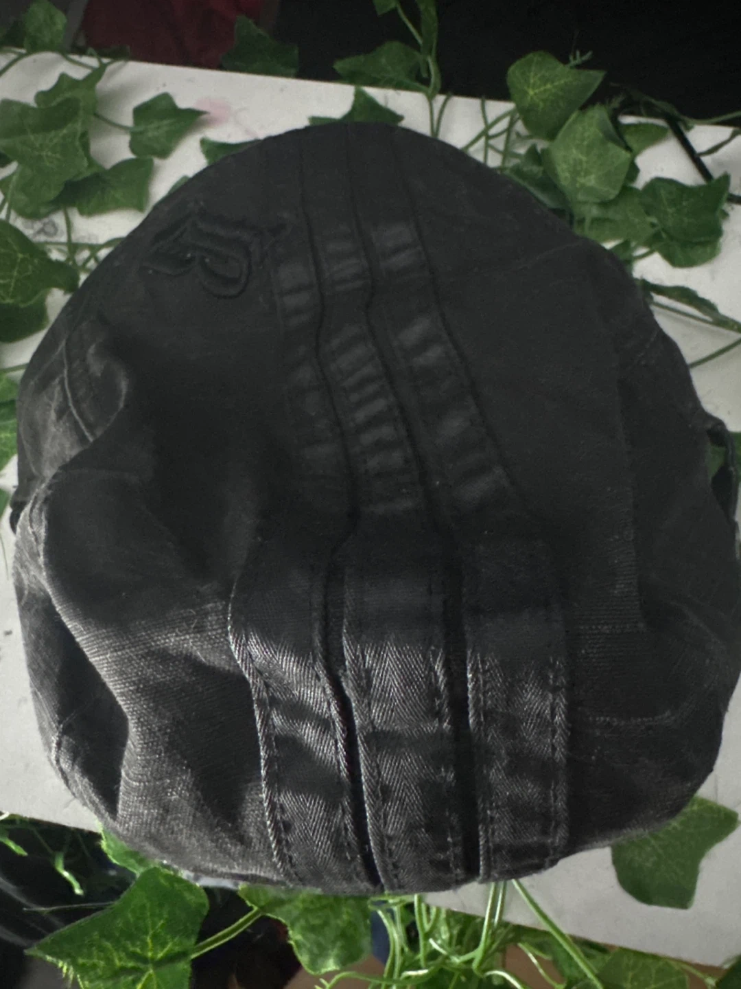 Selling a stylish black newsboy cap. It features a unique embroidered logo and a classic design. Perfect for adding a touch of vintage flair to your outfit!
