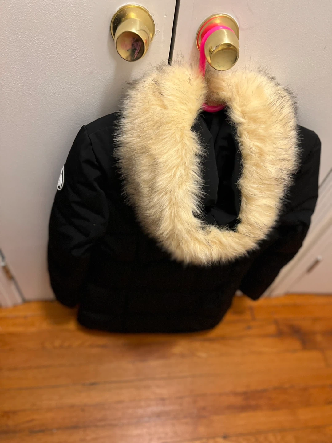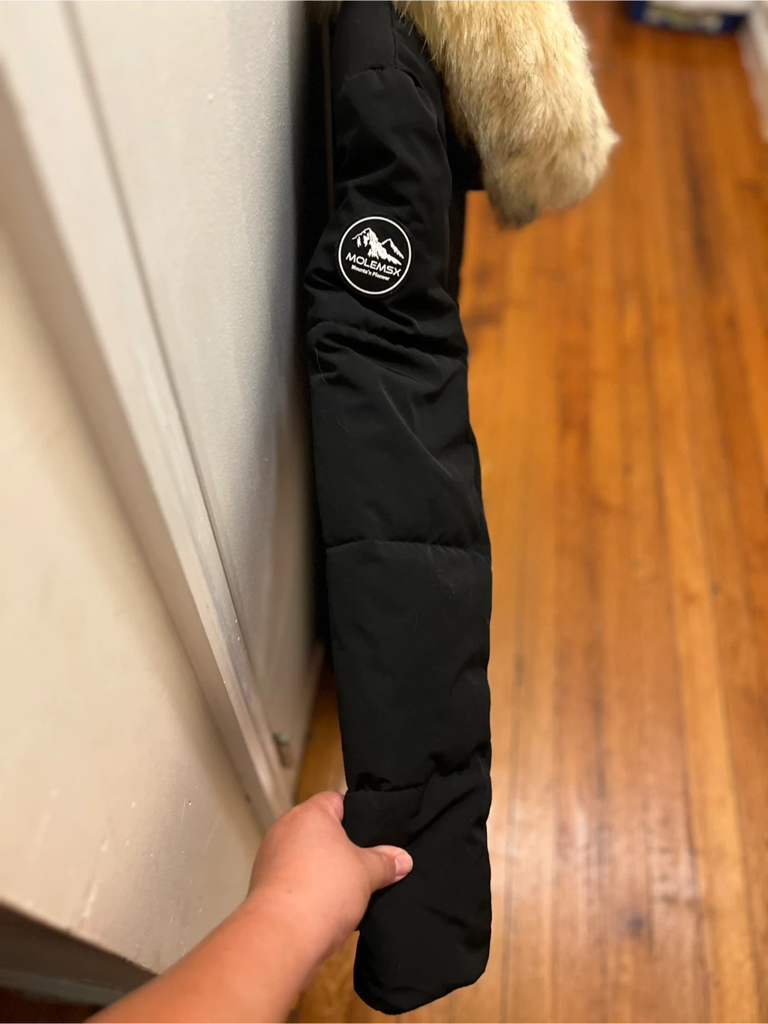 10Selling a black puffer jacket with a fur hood. It's in great condition and ready for the colder weather! The brand is MCLEMSX, as seen on the sleeve.