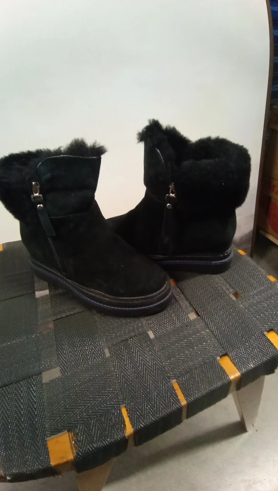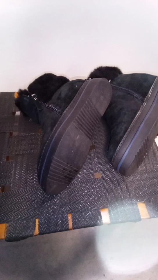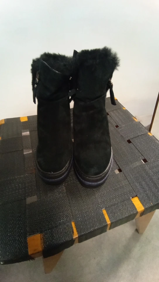 Selling a pair of black suede ankle boots with a cozy fur trim! They are in good condition and would be perfect for the colder months. Please take a look at the pictures for details!
